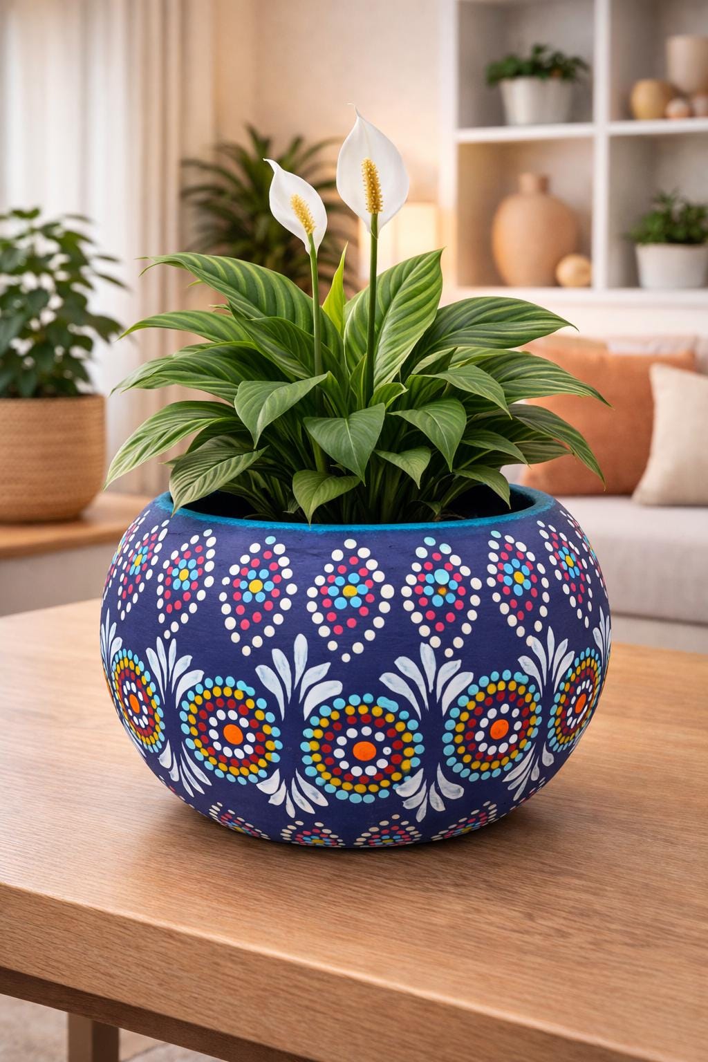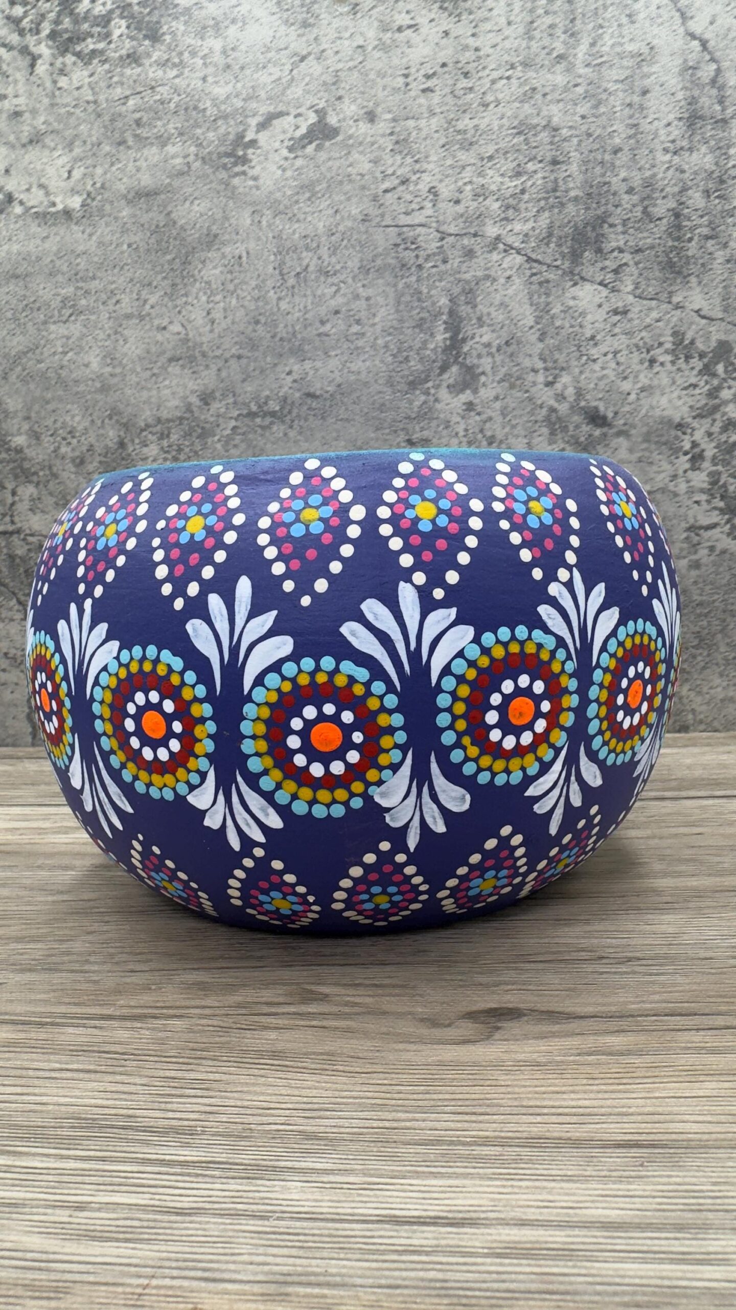 This decorative planter is perfect for succulents, small plants, or as a charming accent piece for shelves, tables, or desks. Because every pot is individually crafted and painted by hand, each one carries unique character and artisan quality.