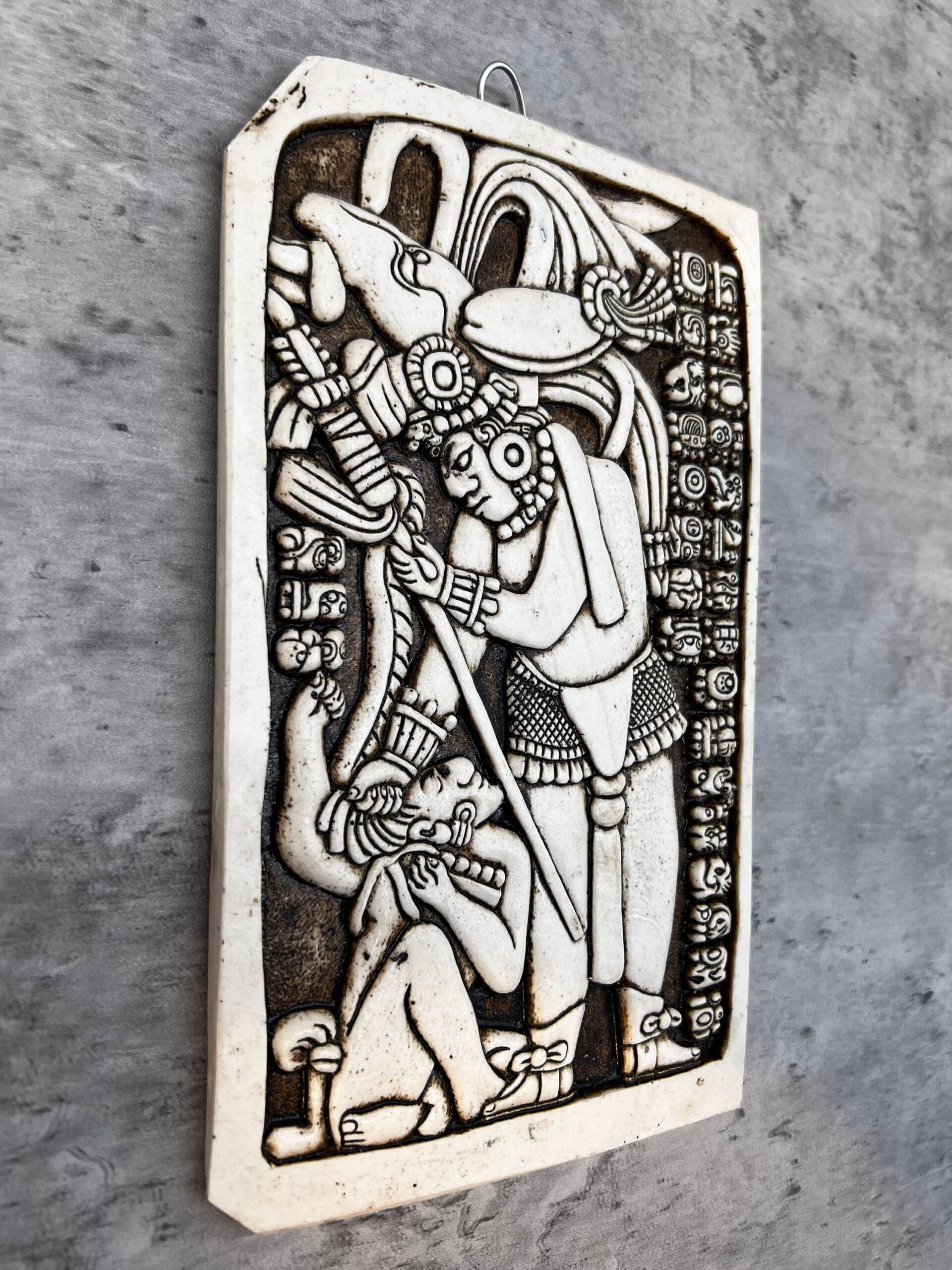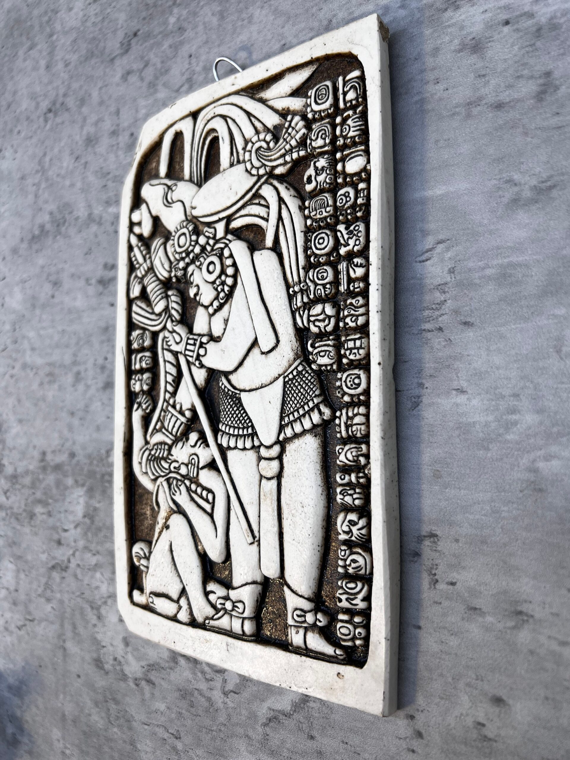 This Mexican wall art represents what the Mayan culture was during the pre hispanic era.