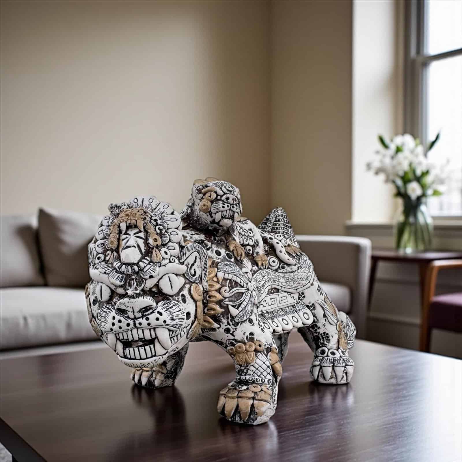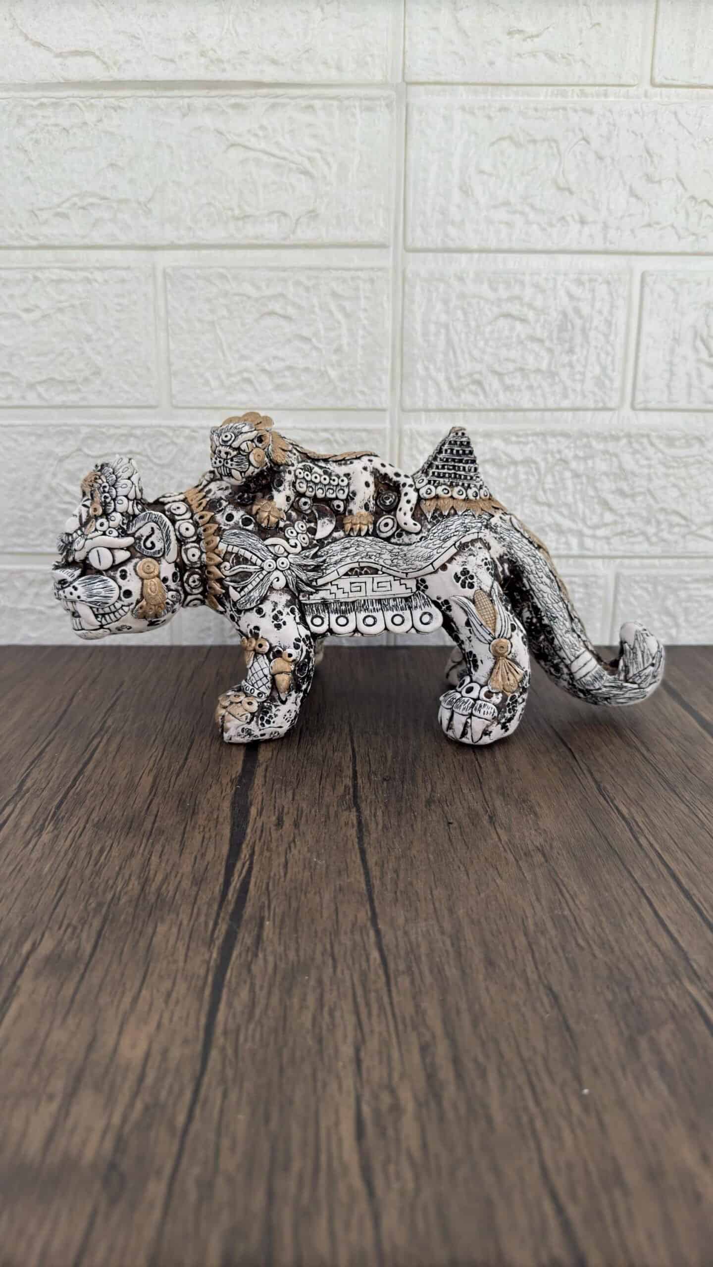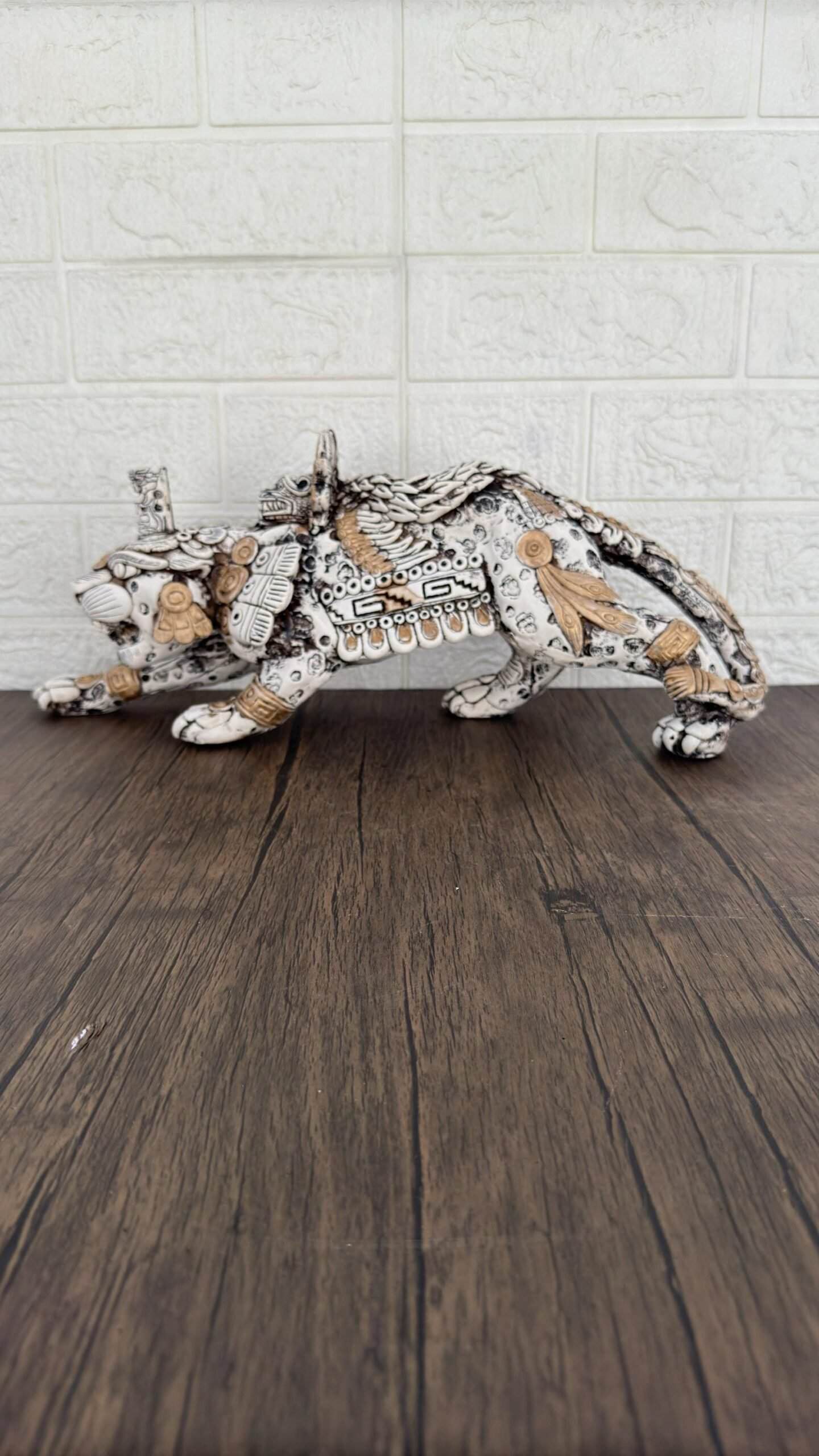 This Mexico resin jaguar figurine is a stunning piece of art that brings the wild spirit of the jungle into your home. Handcrafted with care, this 11-inch statue captures the sleek and powerful form of the jaguar, with intricate details and a lifelike appearance.