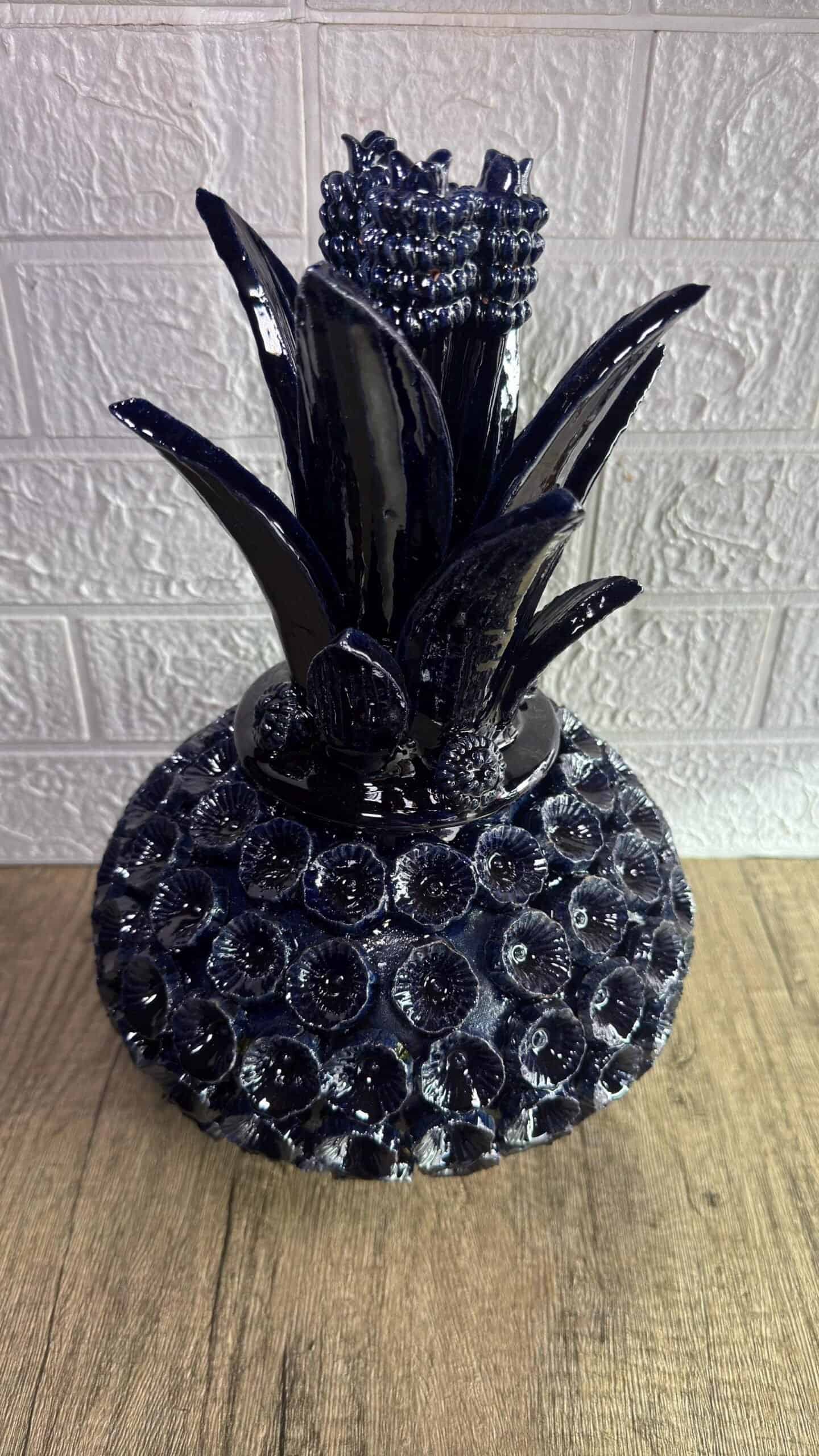 Glazed Pineapple – Mexican folk pottery – Mexican folk art This pineapple decor is a unique piece, each part of the scale is made by hand, by artisans from the state of Michoacan, Mexico. Characteristic: – Size: 8” wide, 13.5” tall – Clay material The pineapple sculpture of Michoacan is distinguished in Popular Art in Mexico not only for its quality, but also for the ancestral techniques they use, making a fusion of prehispanic techniques. Glazed clay, named for its glazed, glass-like appearance. The potters’ process consists of applying to the clay pieces, after their first firing, a film or layer that, after melting in an oven, takes on a crystalline appearance. It is therefore a smooth and waterproof coating achieved in a second firing that must reach 800 °C to 1300 °C. ______________________________________________________________________________________________________________________________________________________________________________________________________________________ This beautiful decoration pineapple can be used as a home decoration, the top of the pinecone can be removed to store items inside. By buying one of these pieces you support the families of artisans who work in this beautiful art. ______________________________________________________________________________________________________________________________________________________________________________________________________________________ IMPORTANT NOTE: – The colors of the pineapple may vary slightly from what is seen in the monitor – Please note that as this is a handmade enameled piece there may be some imperfections. – All our fragile products, we pack them with special materials to guarantee their protection, if there is any problem with your package, please contact us to solve it as soon as possible. ______________________________________________________________________________________________________________________________________________________________________________________________________________________ Order carefully, we will pack ✅ Express shipping is available for an additional charge, please ask ✅ You can send this with a special dedication✅ It can be sent with a special wrapping as a gift (warn)✅ Any questions please do not hesitate, we usually respond in less than an hour 😀