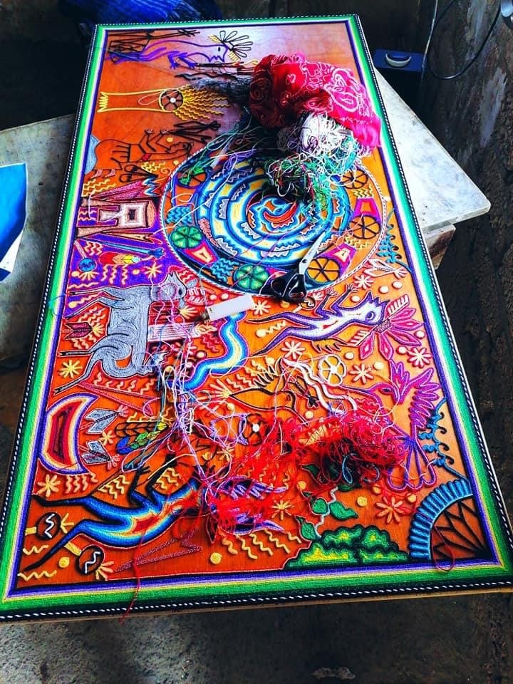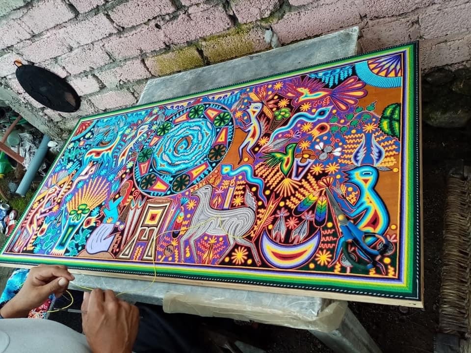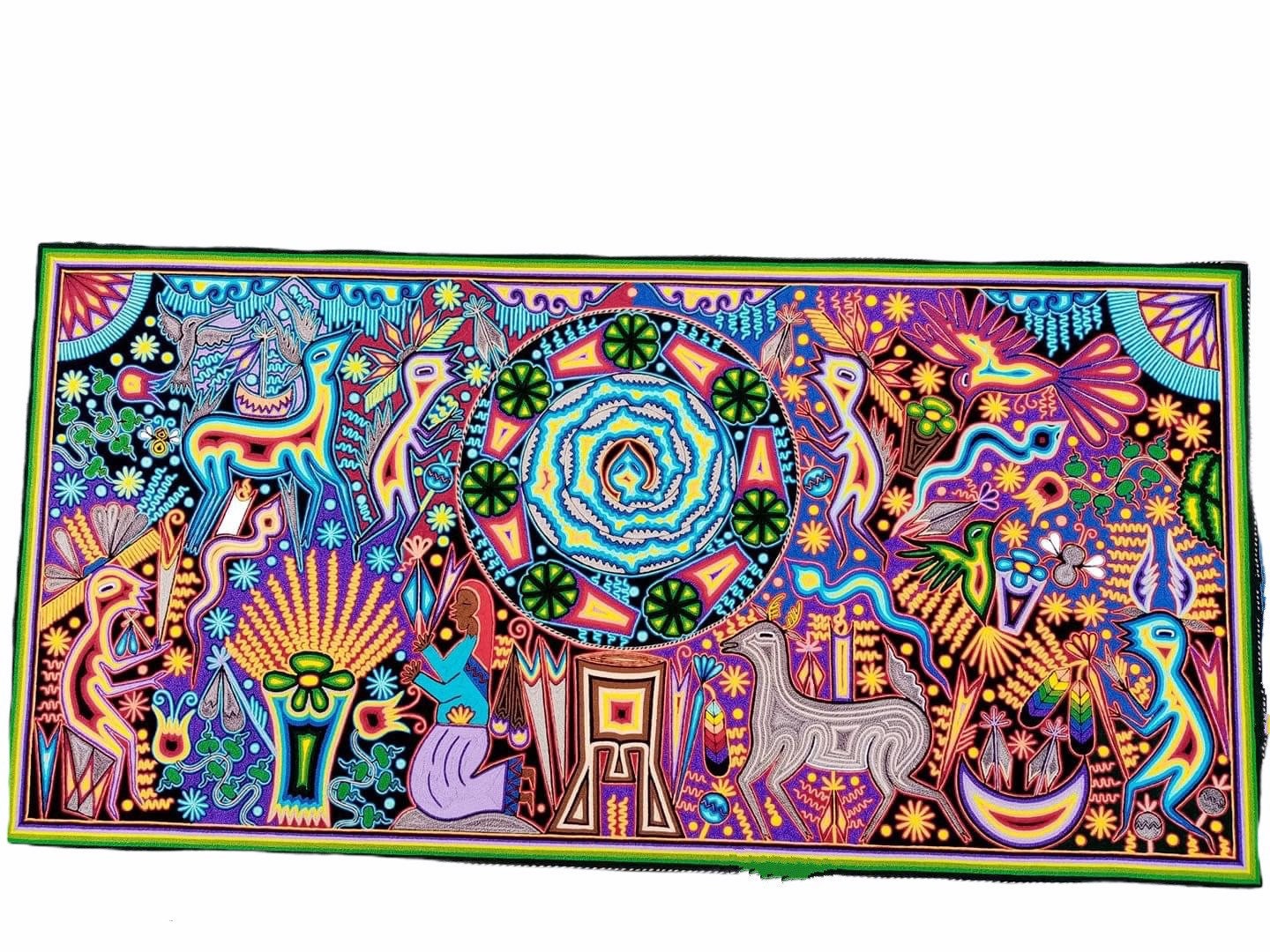Mexico Huichol Thread Painting 47.24 “x 23.62” In Diamond Quality, Made By Huichol Art Xitacame, Mexican Decoration , Mexican Wall Art