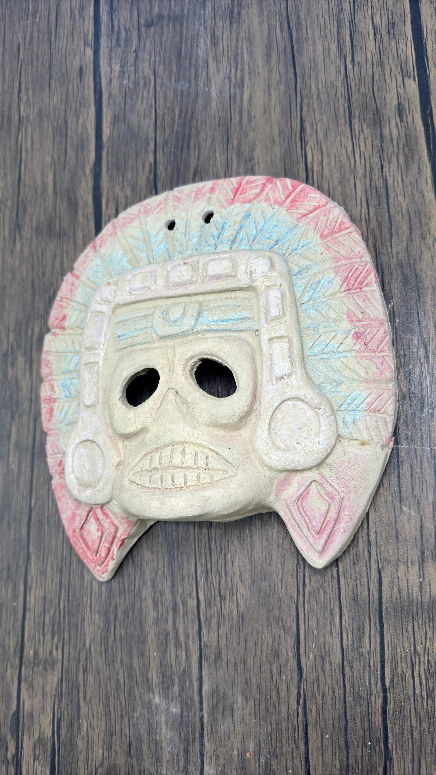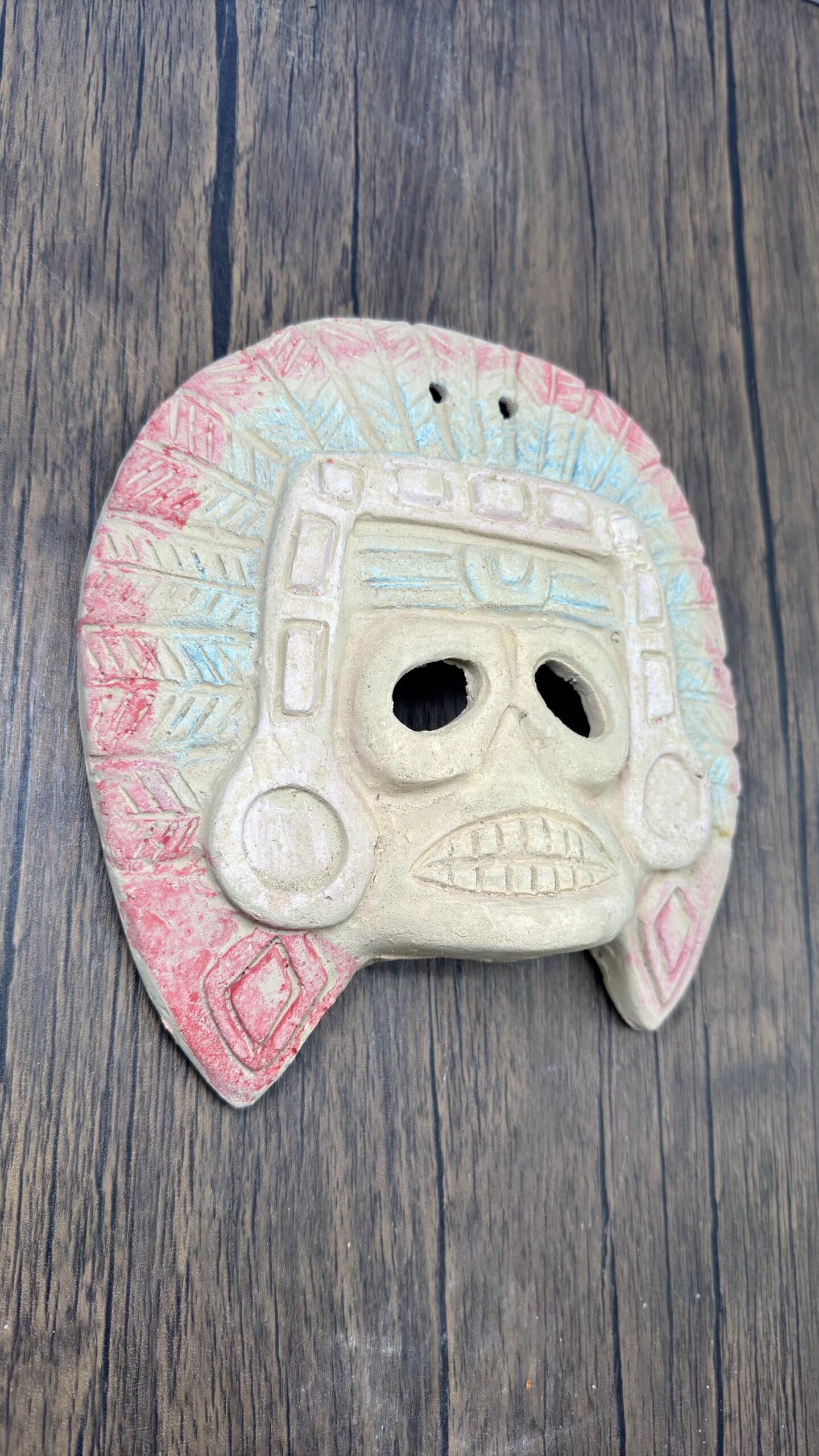 **Handcrafted Clay Mask of Mictlantecuhtli, God of Death – Mexican Folk Art** Specifications: -made of clay -prehispanic style -estado de Mexico -Dimension: 8.5” tall