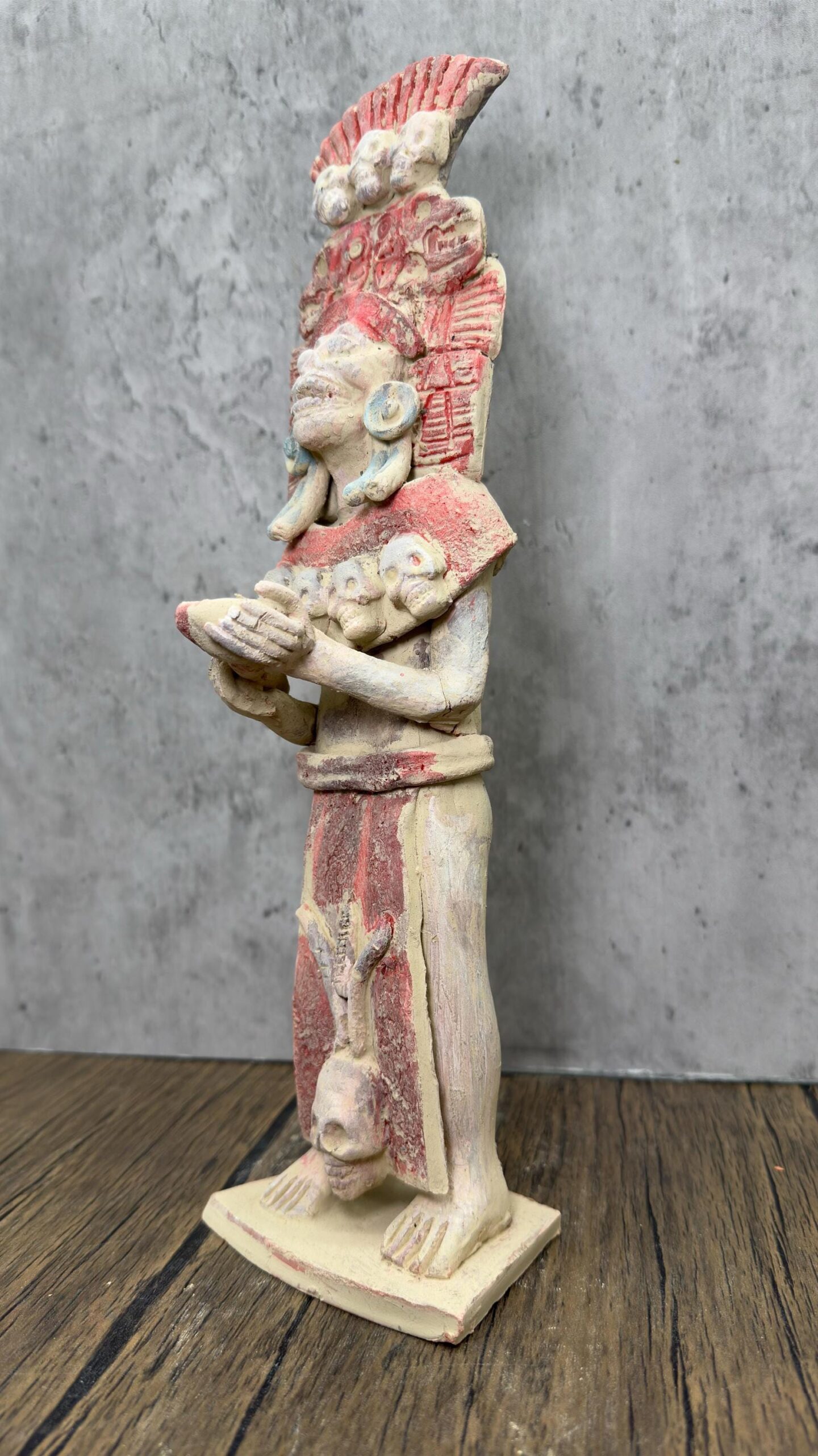 **Handcrafted Clay Figurine of Mictlantecuhtli, God of Death – Mexican Folk Art** Specifications: -made of clay -prehispanic style -estado de Mexico -Dimension: 14” tall