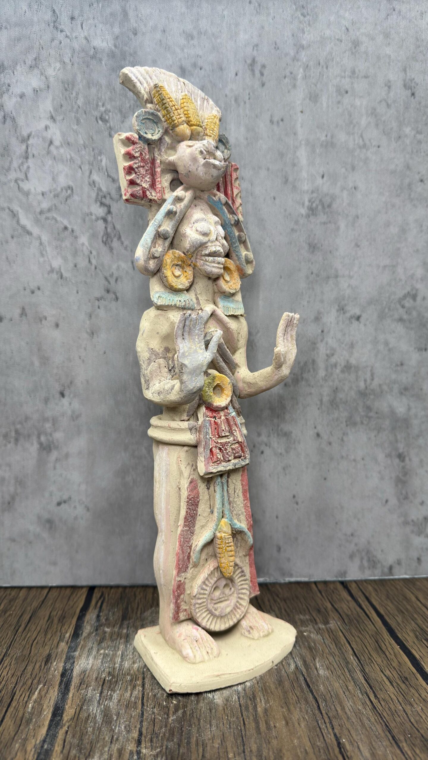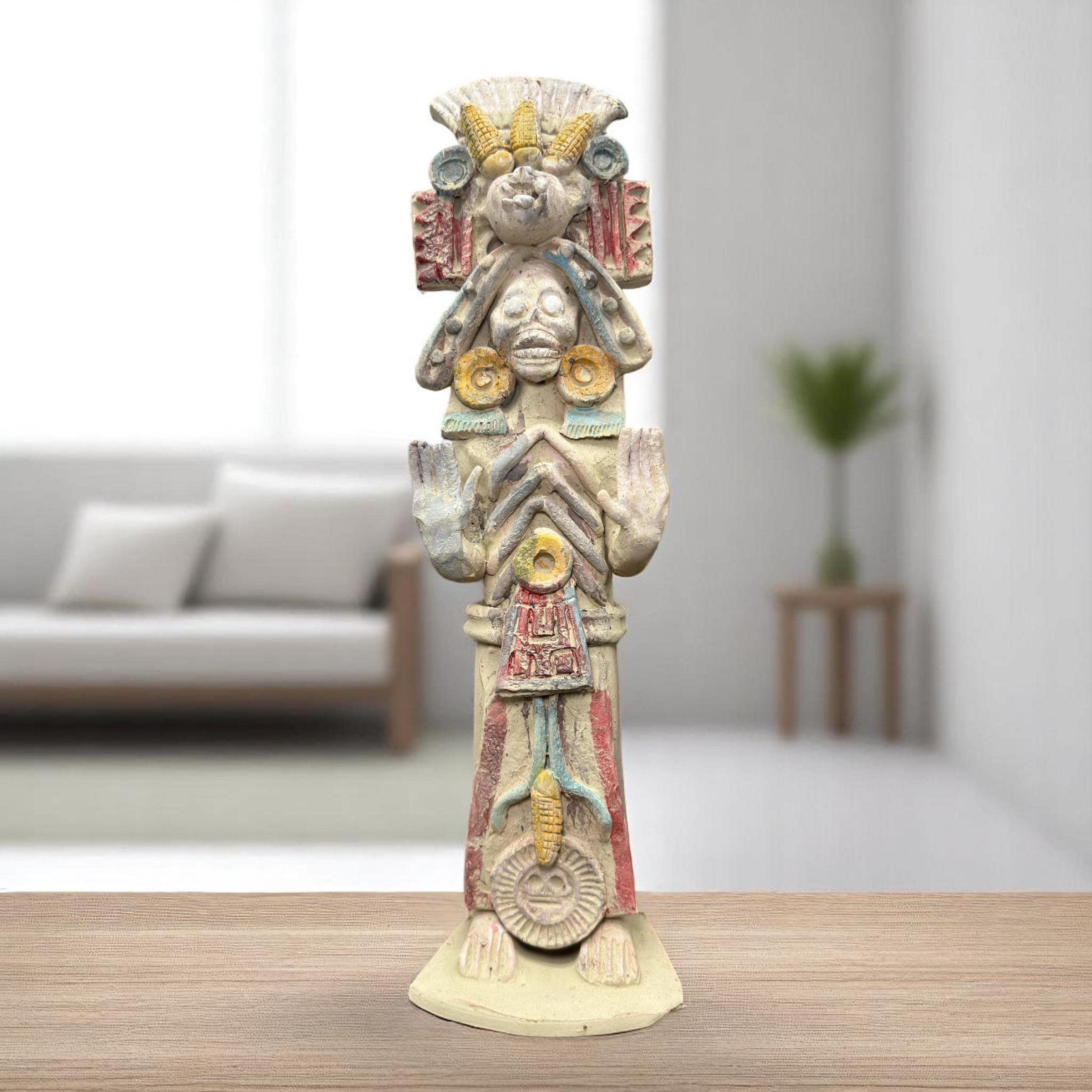 **Handcrafted Clay Figurine of Mictlantecuhtli, God of Death – Mexican Folk Art** Specifications: -made of clay -prehispanic style -estado de Mexico -Dimension: 14” tall