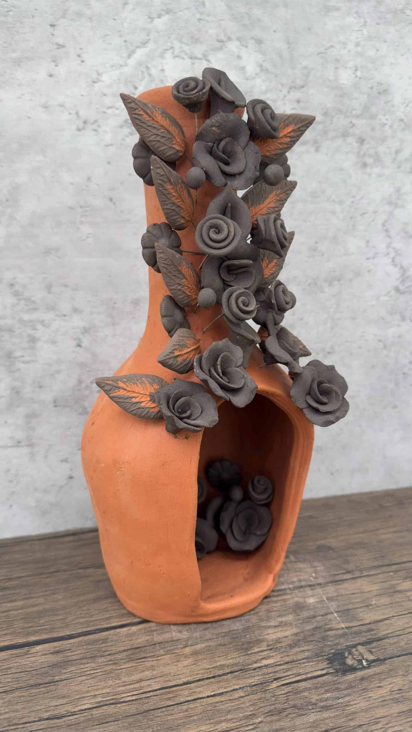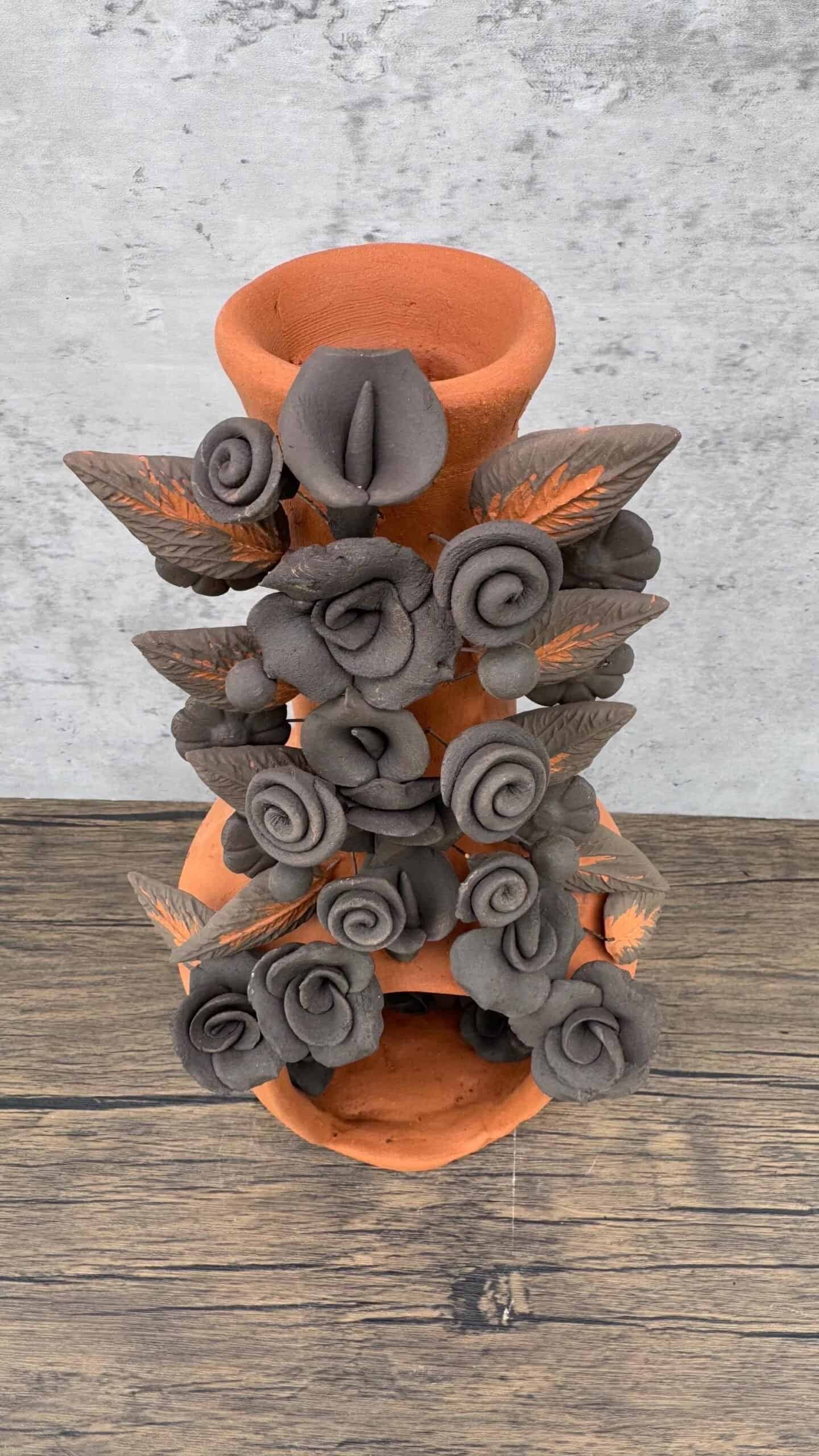 “ Mini Chimney Filifrana Or Pastillaje Technique“ – Handmade by Mexican artisans Oaxaca – Natural clay, Red clay – Measures 12” tall 2.5” hole top surface 3.5” middle hole Experience the warmth of Oaxacan artistry with this unique mini indoor fireplace, handcrafted using the traditional “Pastillaje” or “Filigrana” technique. Made from the finest natural and red Oaxacan clay, this piece not only provides warmth but also serves as a stunning element of decor. Each fireplace is meticulously sculpted by hand, showcasing the exquisite detail and craftsmanship that Oaxacan artisans are renowned for. The “Pastillaje” technique involves layering thin strips of soft clay into complex patterns, creating a delicate filigree effect that is both visually striking and texturally rich. The contrasting hues of the natural and red clay enhance these designs, making each fireplace a vibrant centerpiece in any room. This mini fireplace is designed for indoor use, perfect for adding a cozy ambiance to your living space. It is equipped with a small opening to accommodate safe, eco-friendly fuel options, ensuring a clean burn without smoke. Ideal for those who cherish unique, handcrafted items, this mini fireplace marries functionality with art, embodying the spirit of traditional Mexican craftsmanship. It is an exceptional choice for anyone looking to infuse their home with warmth, beauty, and cultural heritage. — This description emphasizes the unique craftsmanship, functionality, and cultural significance of the mini indoor fireplace, appealing to customers interested in home decor that combines aesthetic appeal with practical use.