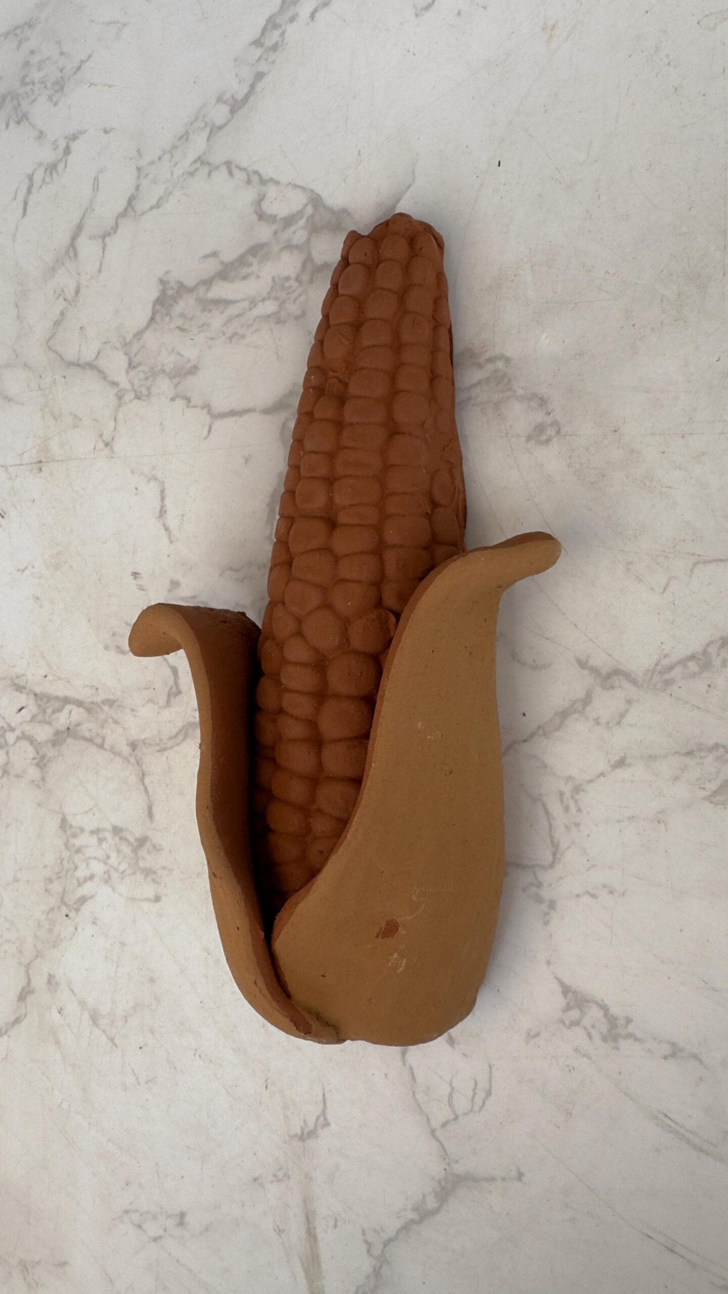 Inspired by maize — a sacred and essential symbol in Mexican heritage — this piece represents abundance, life, and tradition. Every detail, from the textured kernels to the delicate surrounding floral elements, is carefully sculpted by hand, making each piece truly unique.