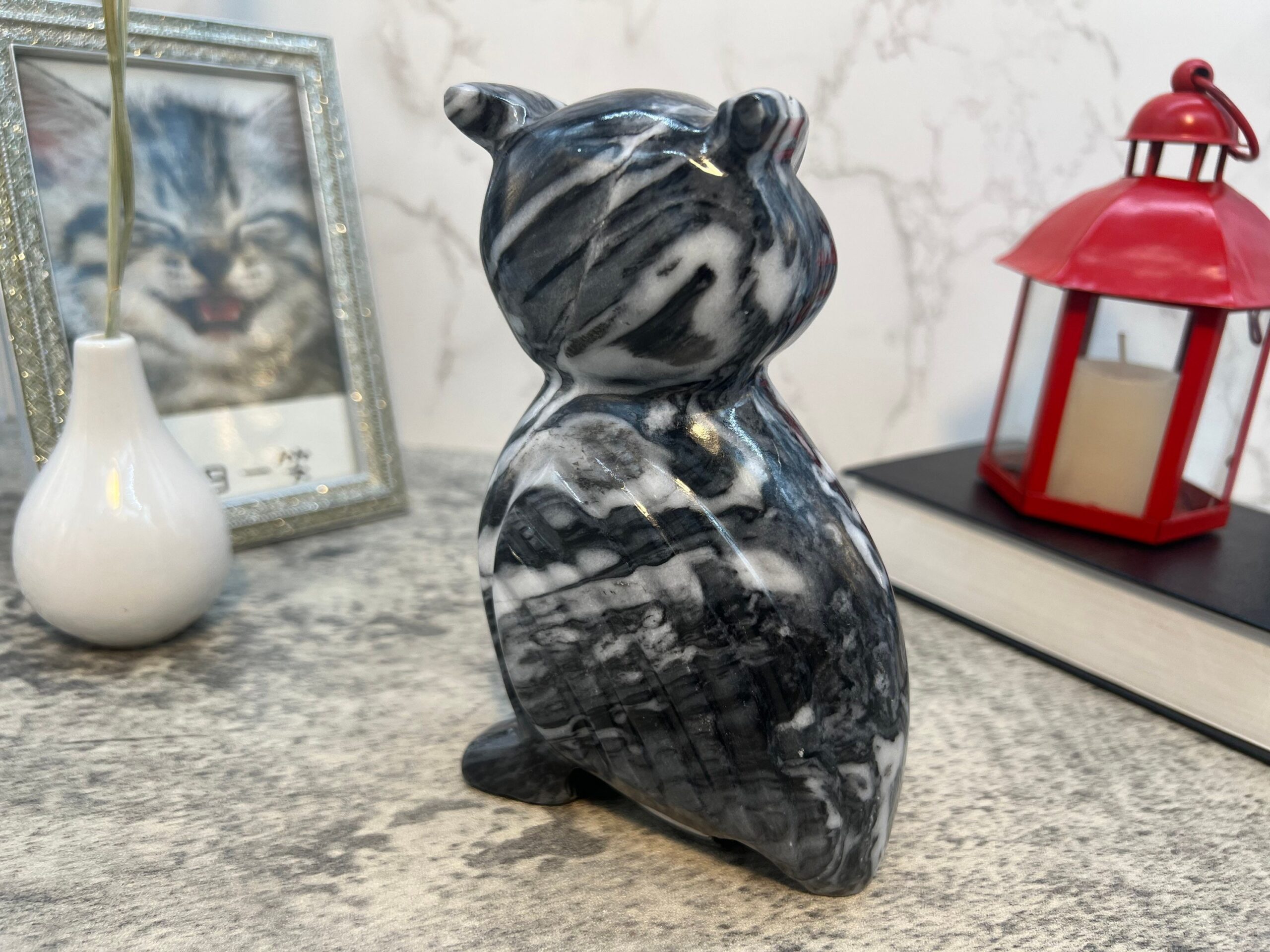 ” Hand carved stone owl “