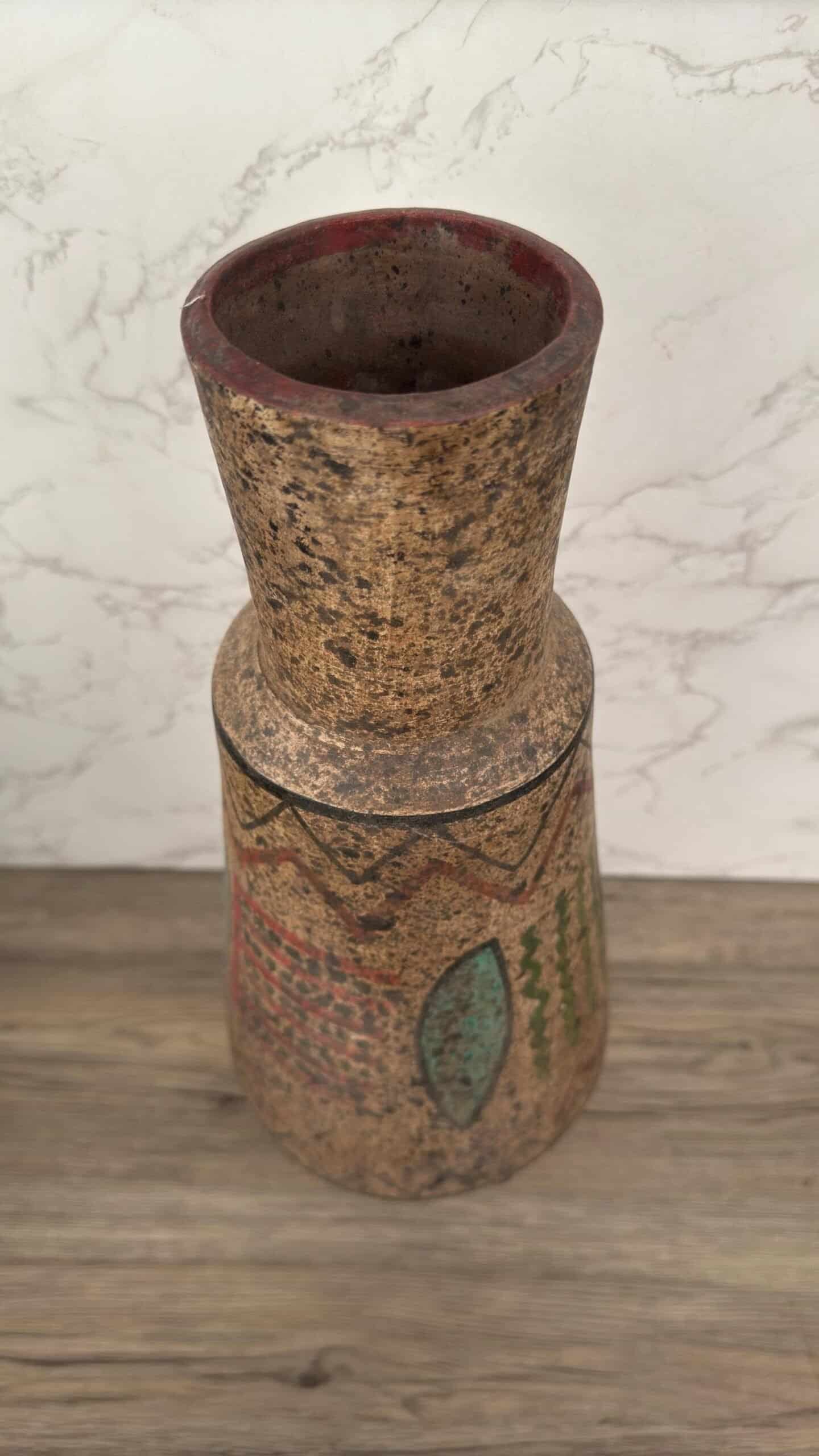 Made by skilled artisans using traditional techniques, this Mexican pottery vase is ideal as a flower holder, decorative centerpiece, or as a statement piece in any bohemian, rustic, or ethnic-inspired home. Each vase is one-of-a-kind, with hand-painted details that evoke the spirit of ancient Aztec and Toltec art.