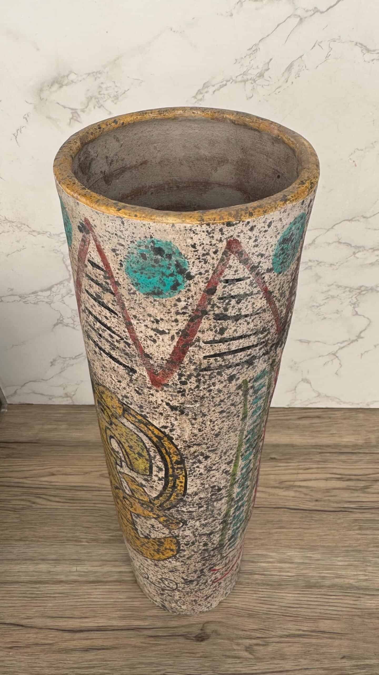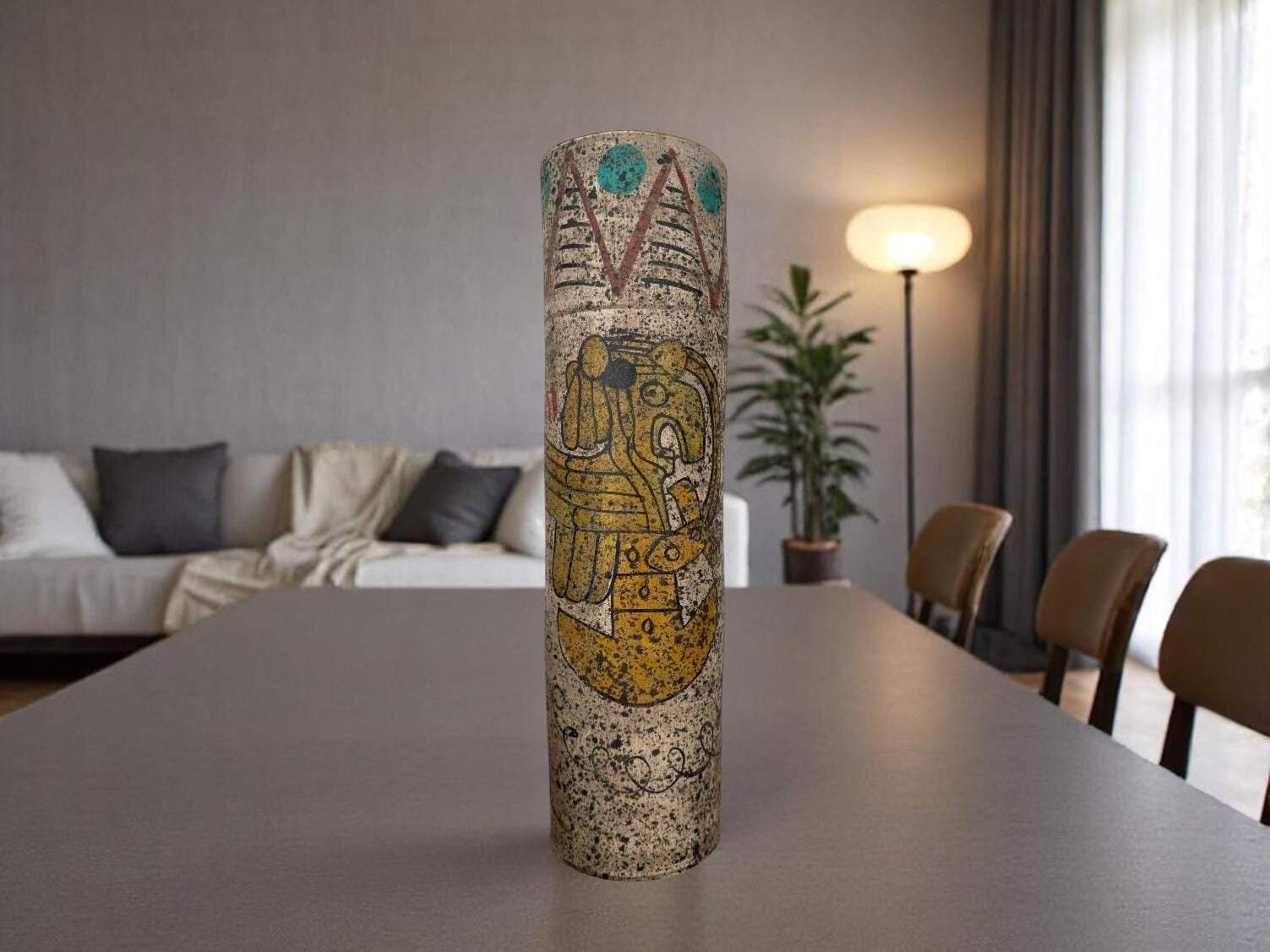 Made by skilled artisans using traditional techniques, this Mexican pottery vase is ideal as a flower holder, decorative centerpiece, or as a statement piece in any bohemian, rustic, or ethnic-inspired home. Each vase is one-of-a-kind, with hand-painted details that evoke the spirit of ancient Aztec and Toltec art.