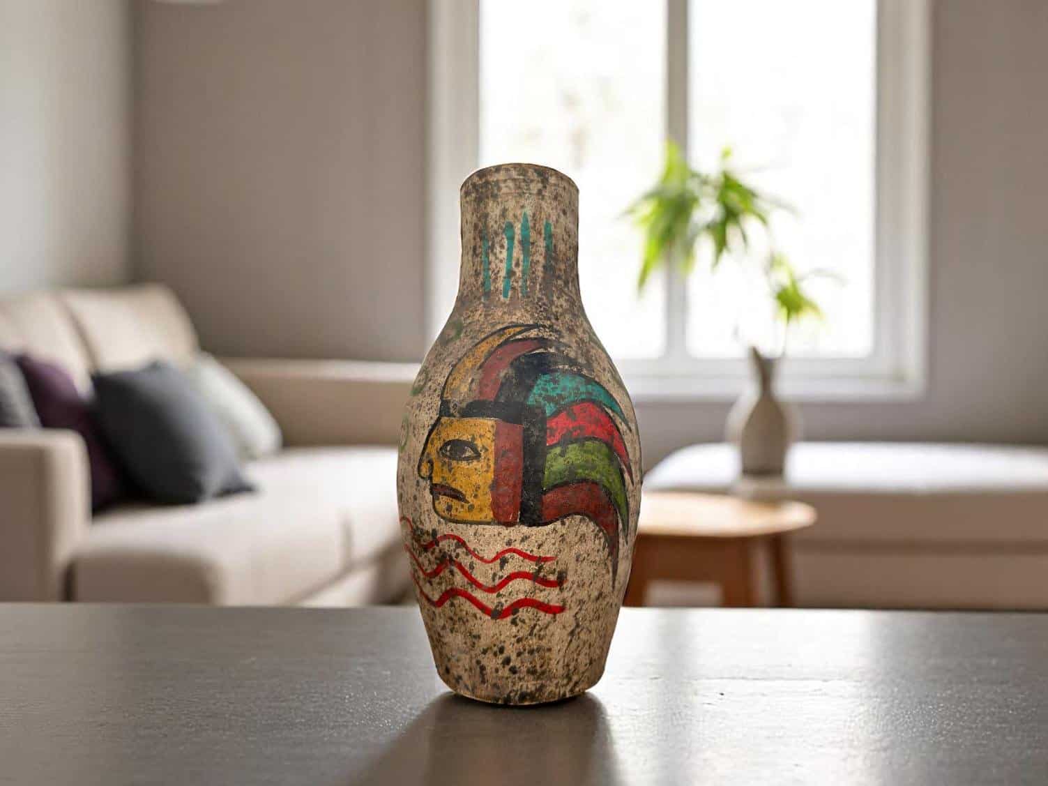 Made by skilled artisans using traditional techniques, this Mexican pottery vase is ideal as a flower holder, decorative centerpiece, or as a statement piece in any bohemian, rustic, or ethnic-inspired home. Each vase is one-of-a-kind, with hand-painted details that evoke the spirit of ancient Aztec and Toltec art.