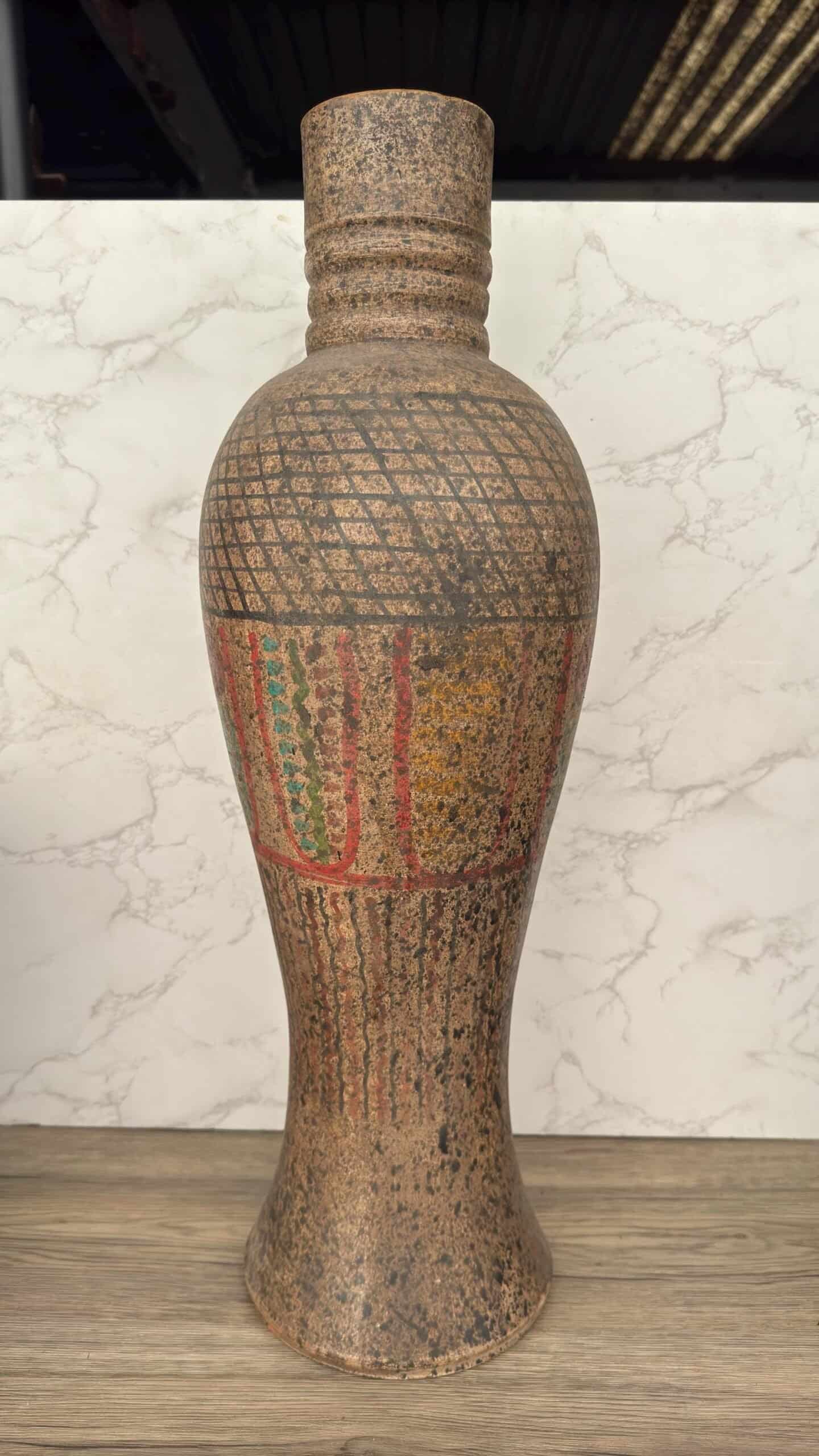 Made by skilled artisans using traditional techniques, this Mexican pottery vase is ideal as a flower holder, decorative centerpiece, or as a statement piece in any bohemian, rustic, or ethnic-inspired home. Each vase is one-of-a-kind, with hand-painted details that evoke the spirit of ancient Aztec and Toltec art.