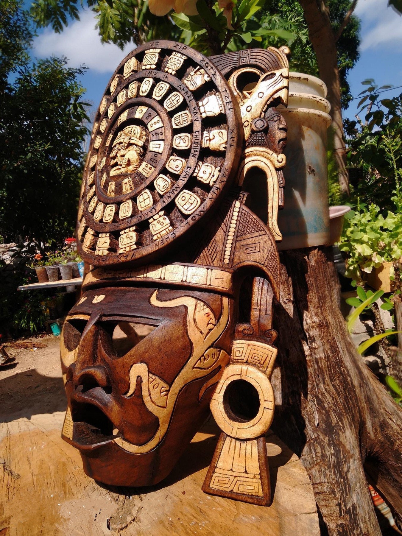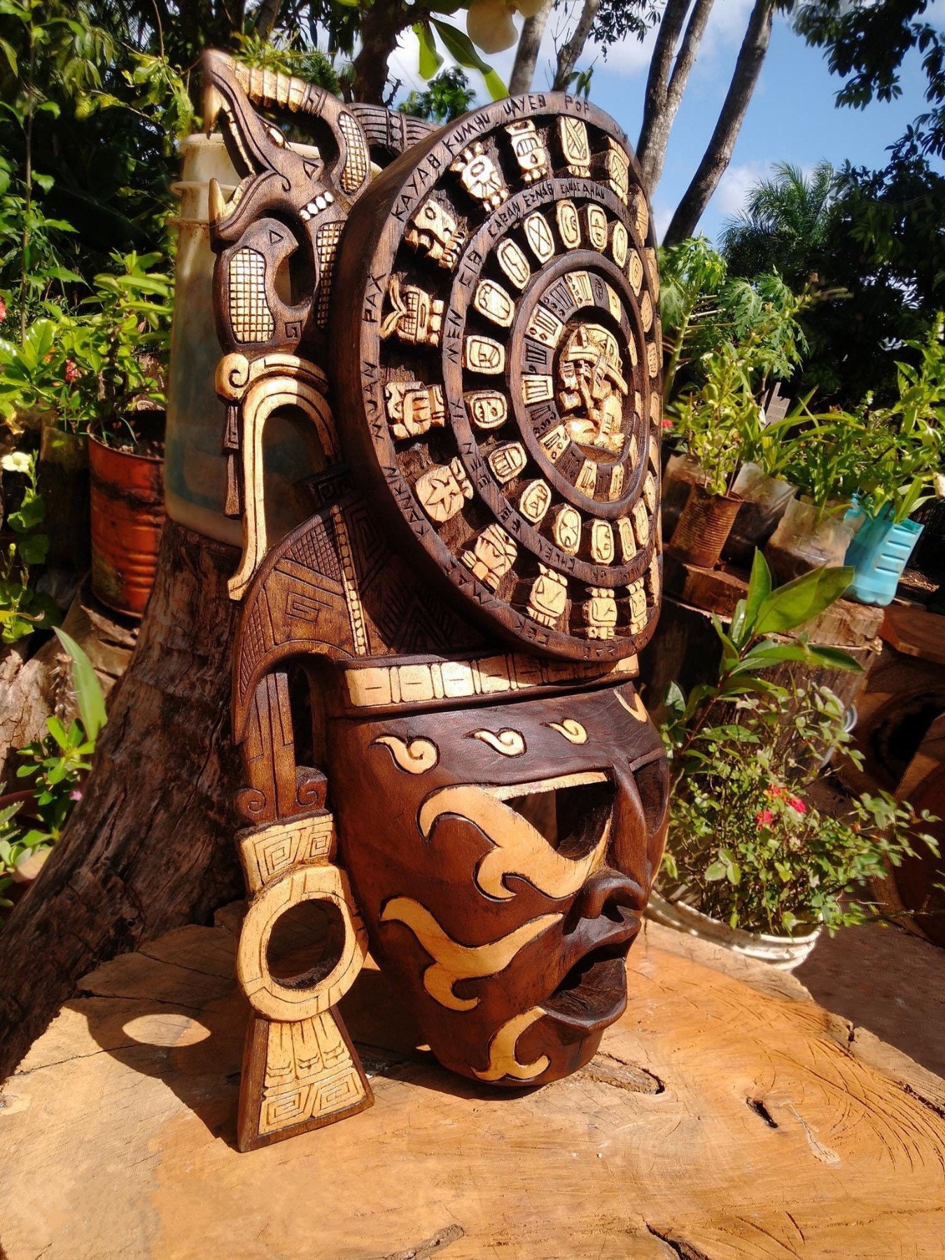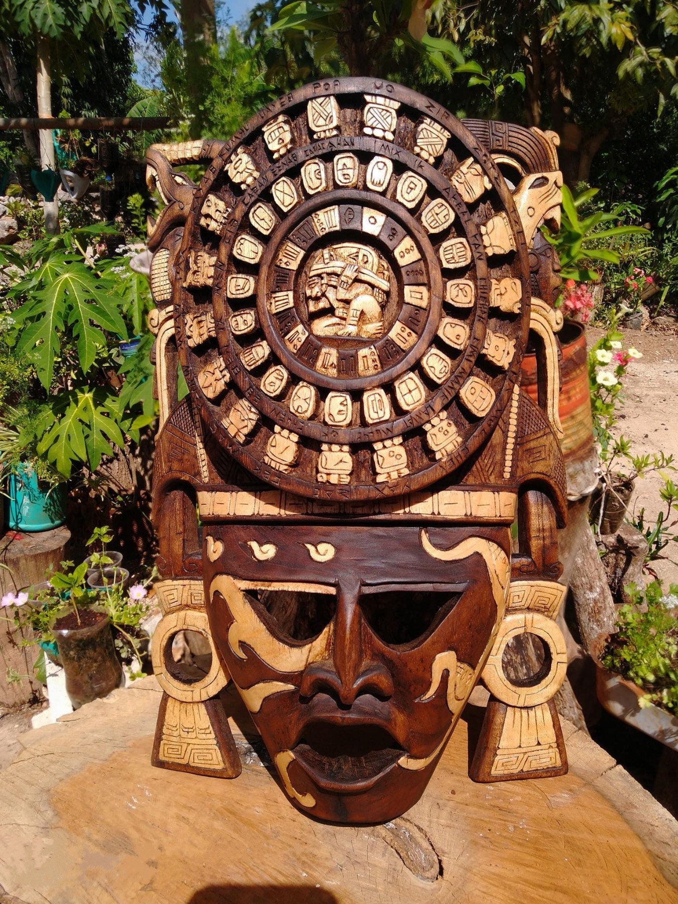 “Wooden Mask – Mayan Mask – Mexican Wall Art”