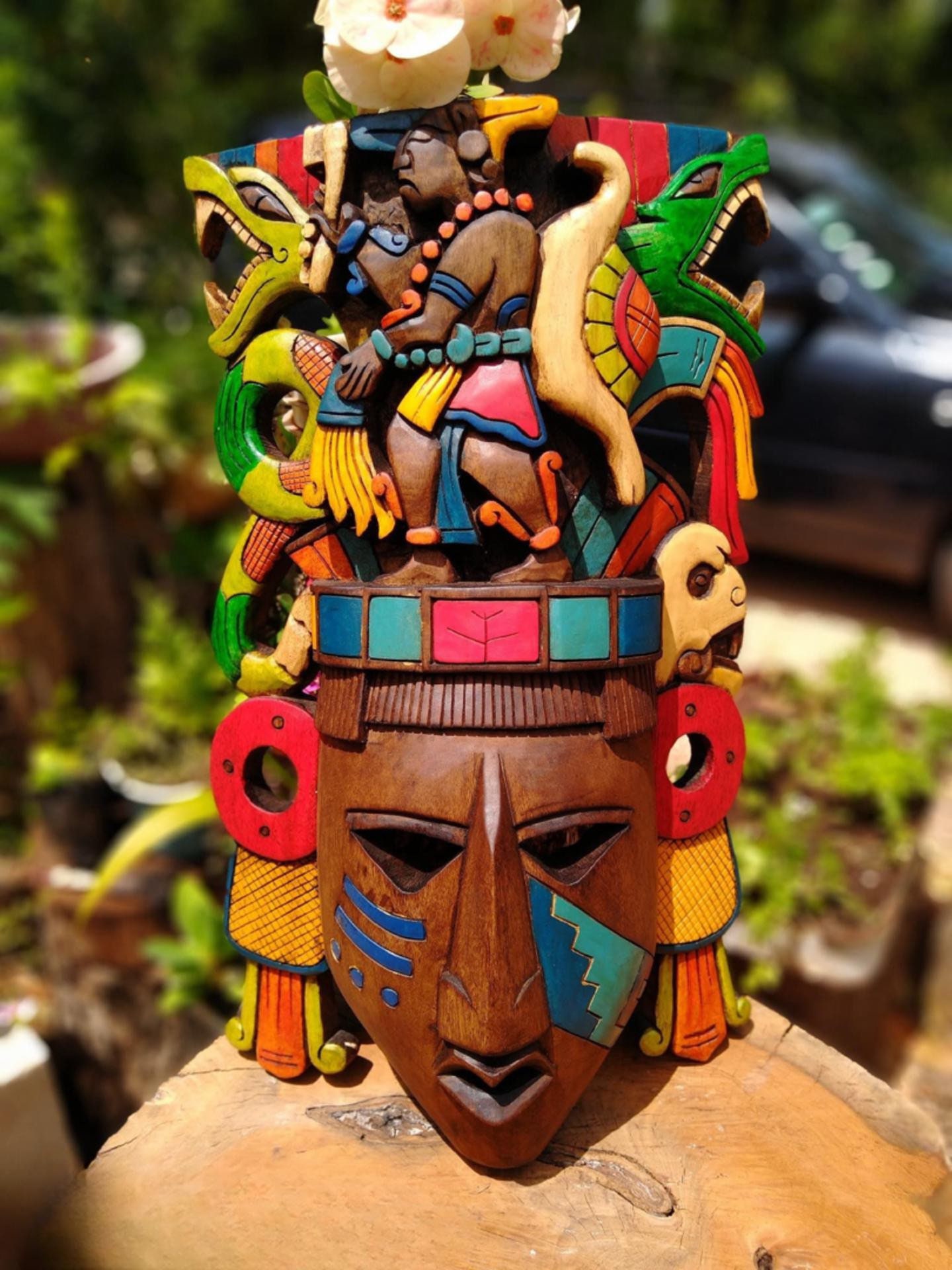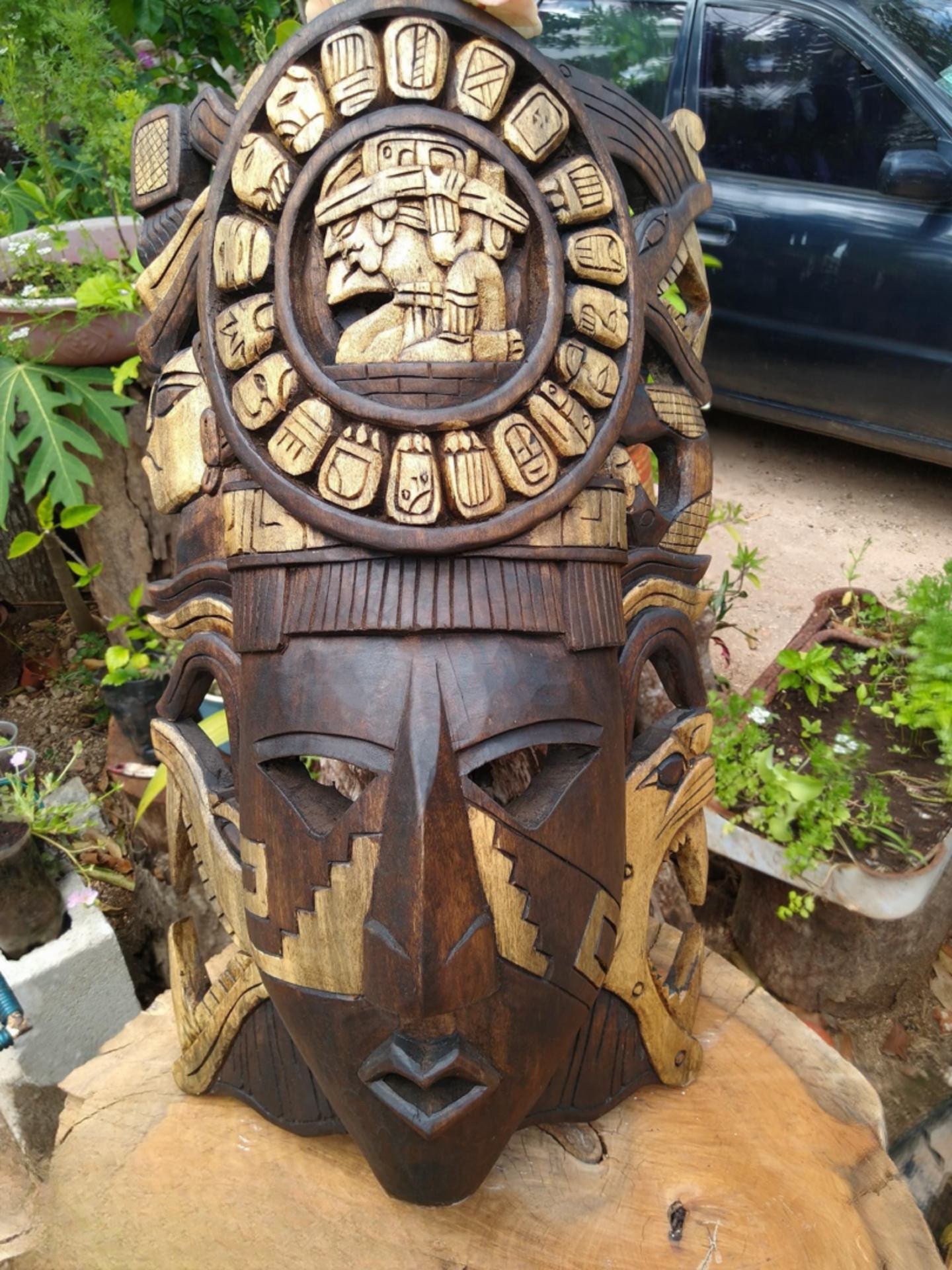 “Wooden Mask – Mayan Mask – Mexican Wall Art”