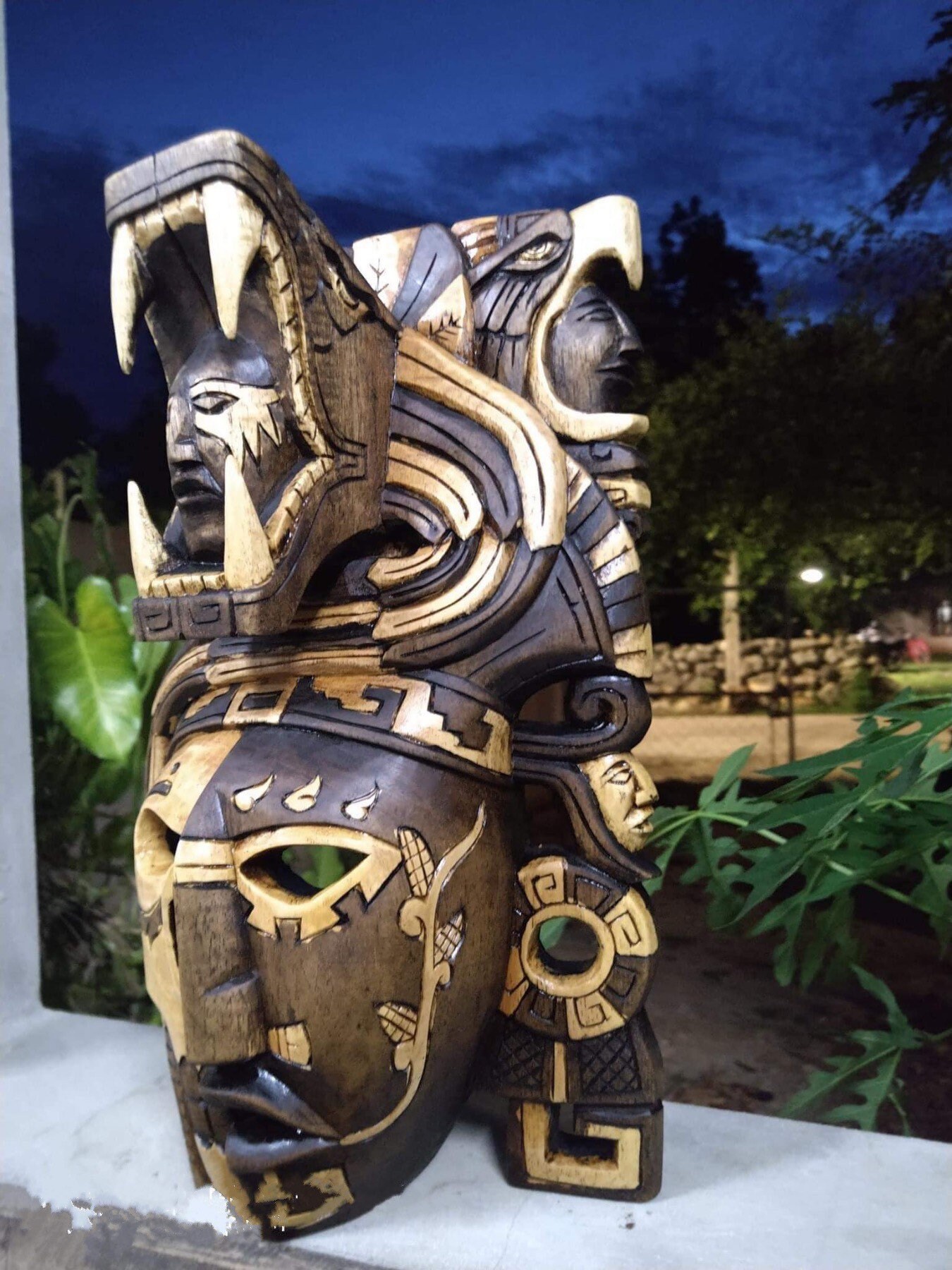 “Wooden Mask – Mayan Mask – Mexican Wall Art”