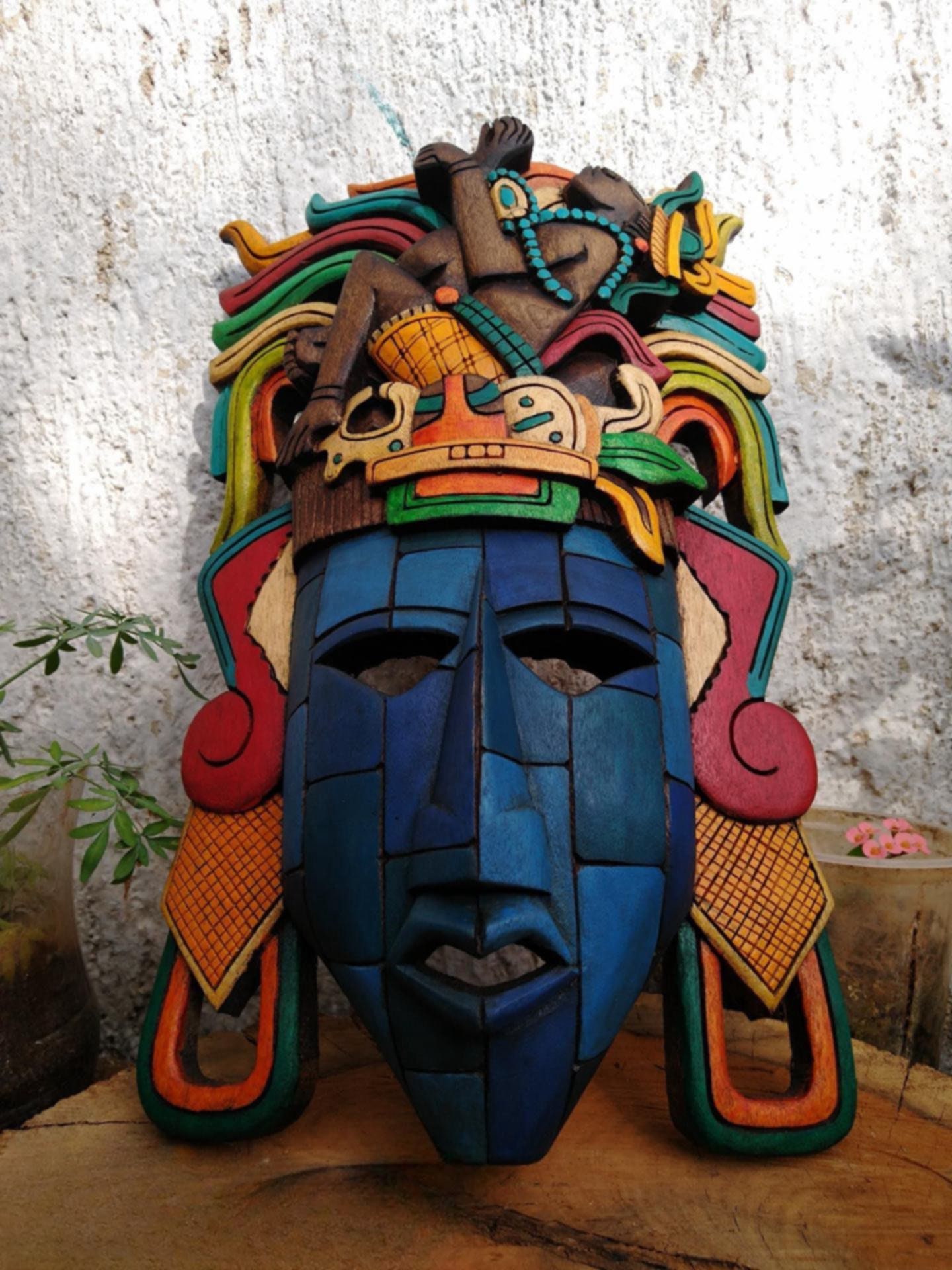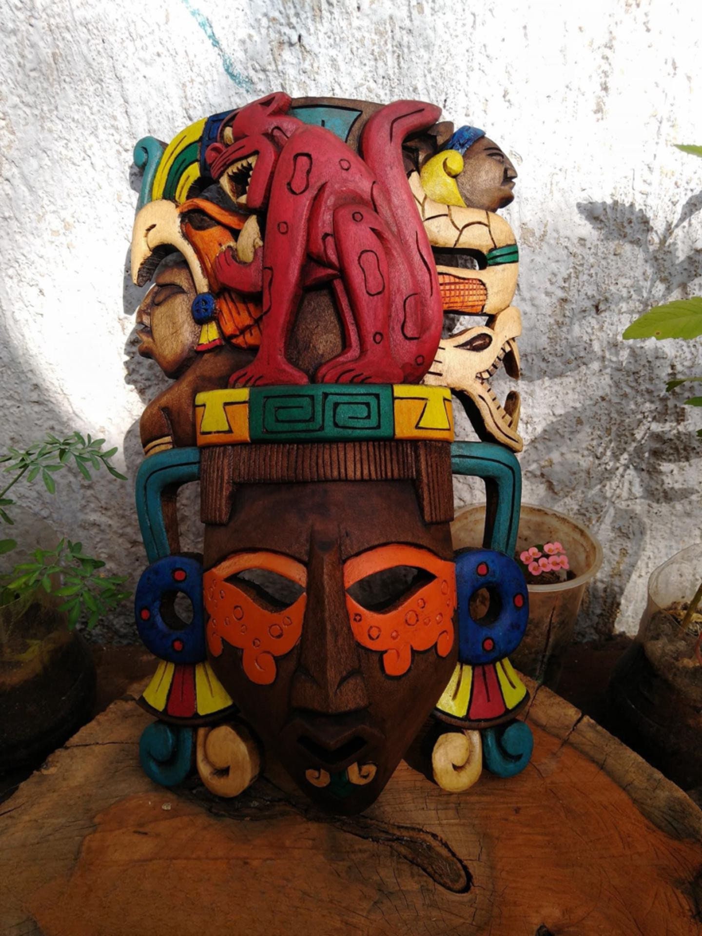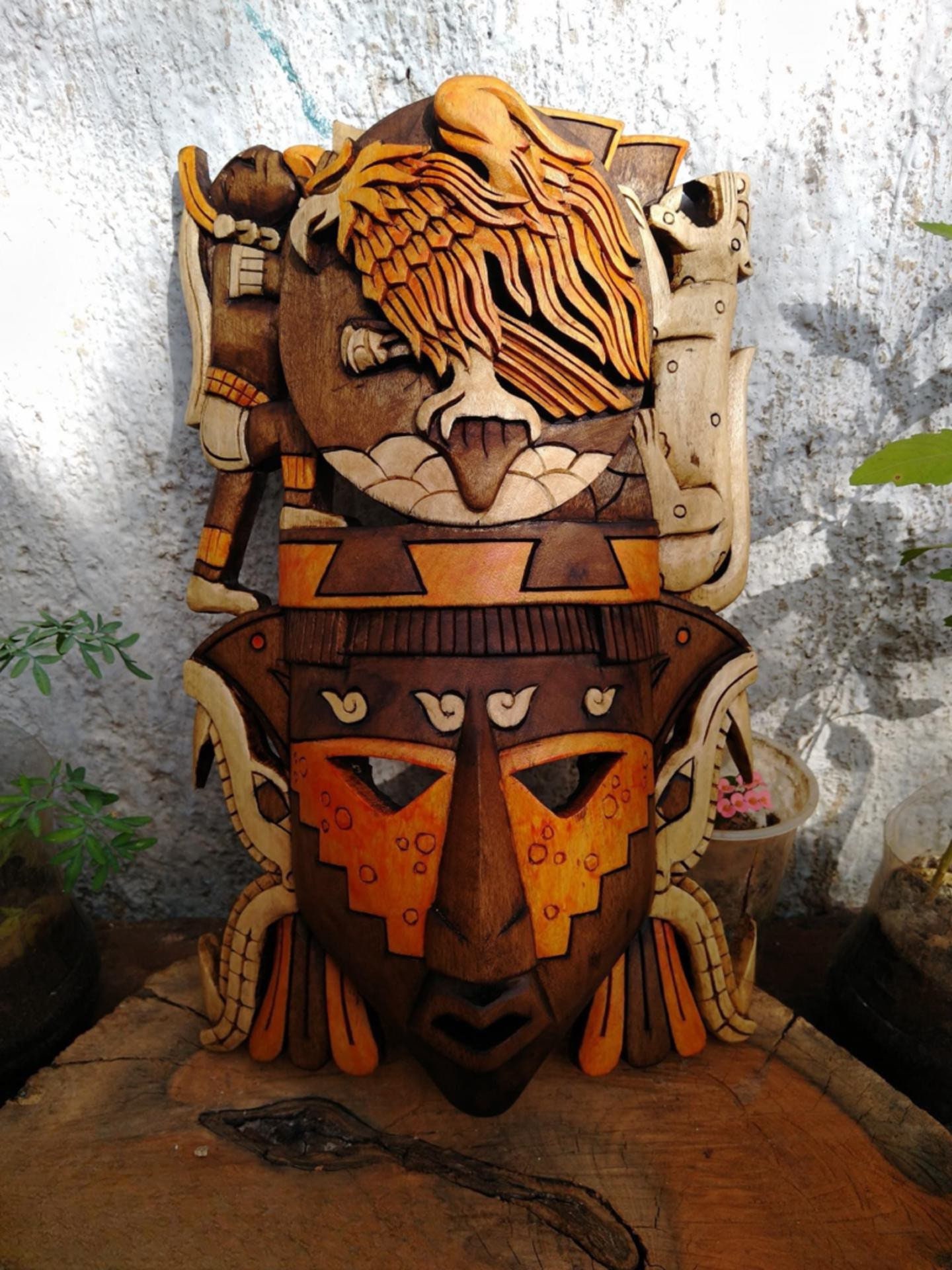 “Wooden Mask – Mayan Mask – Mexican Wall Art”