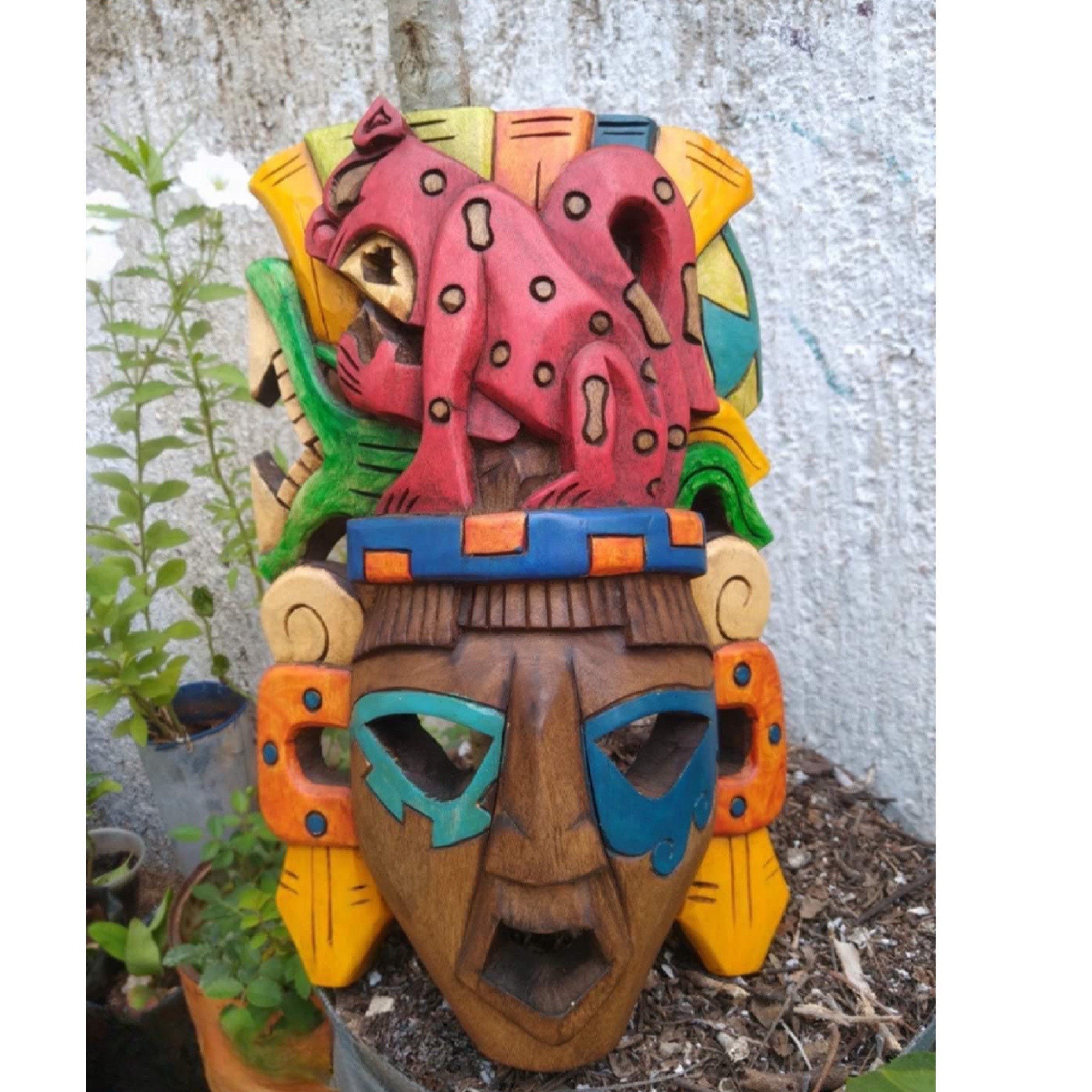 Prehispanic Wooden mask, Mayan culture, Mexican wall art, Hand carved ASK FOR CUSTOMIZE