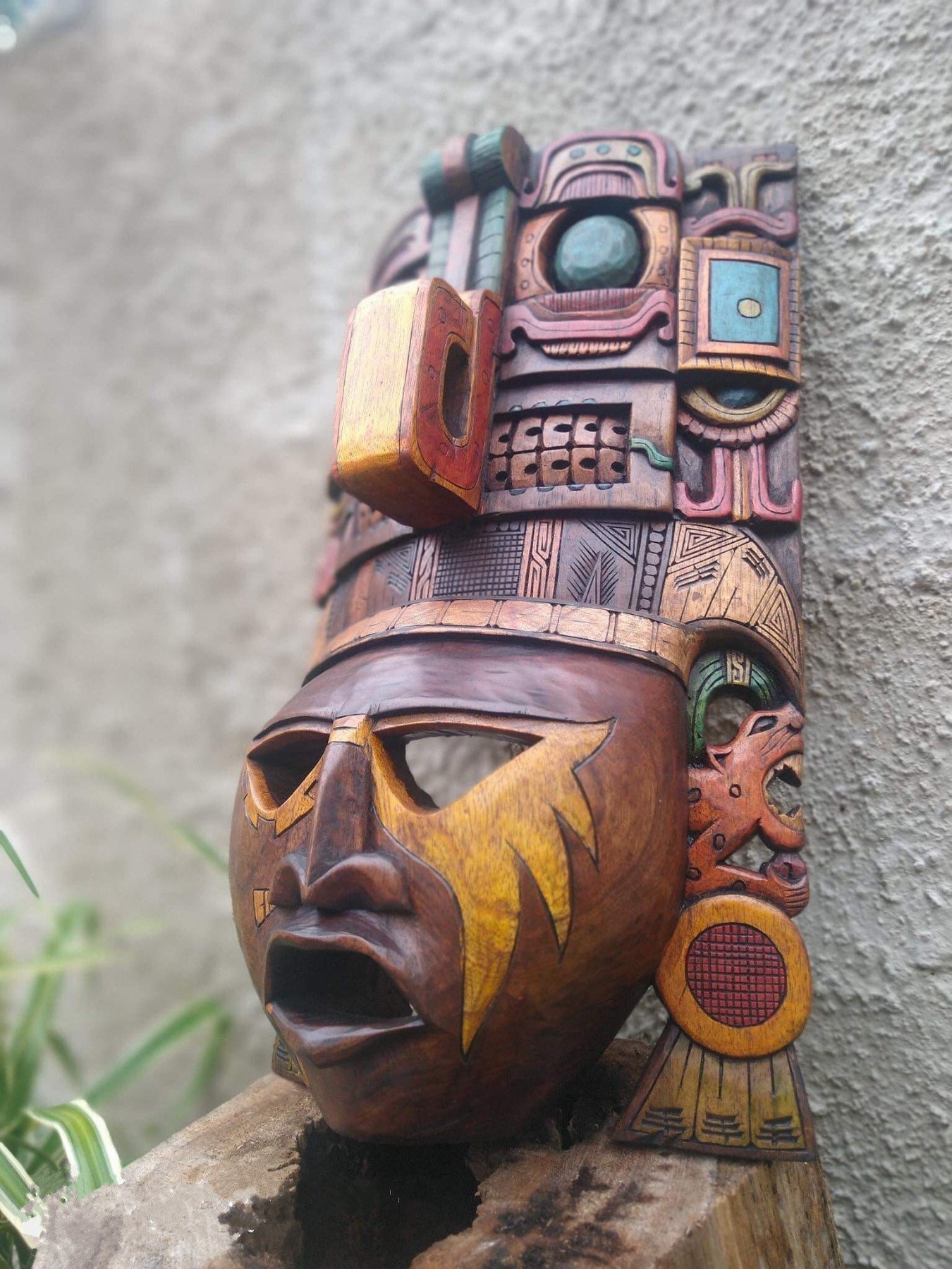 Prehispanic Wooden mask, Mayan culture, Mexican wall art, Hand carved ASK FOR CUSTOMIZE