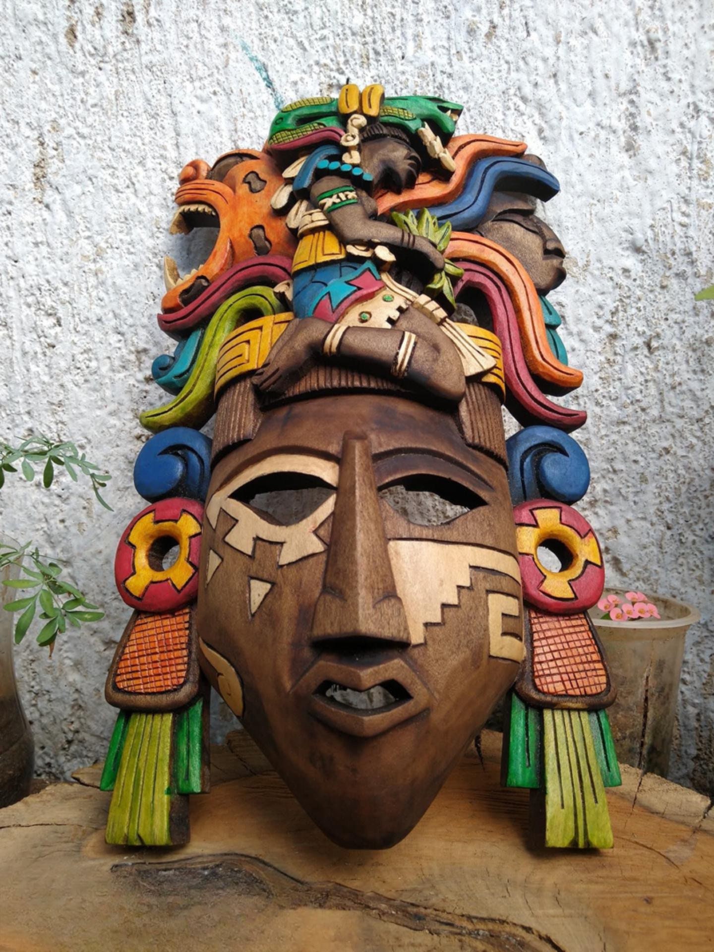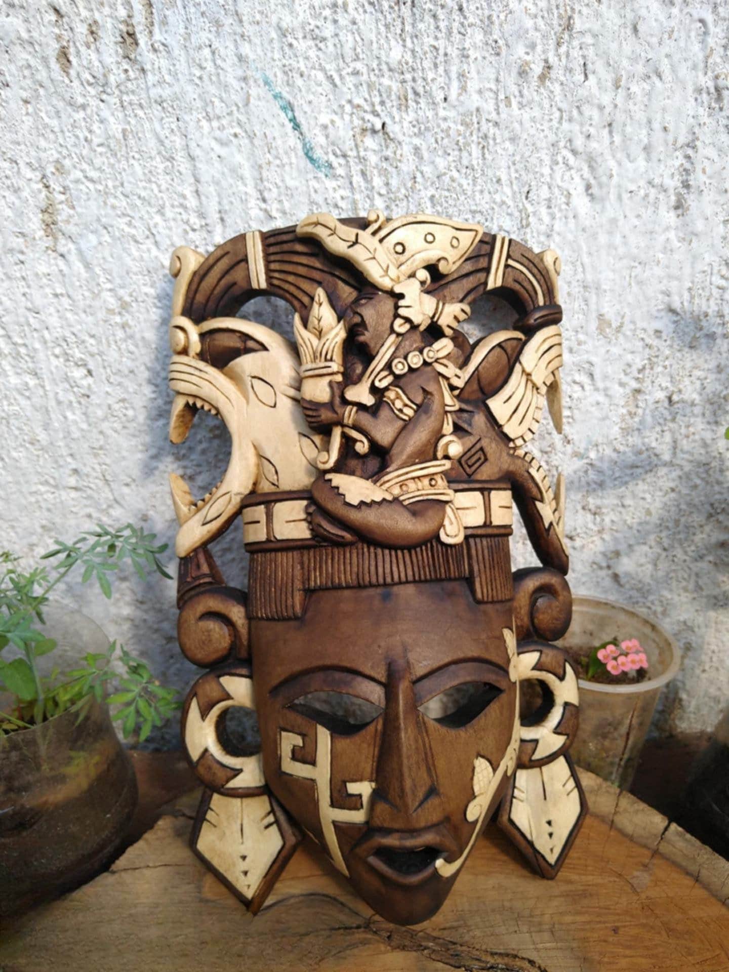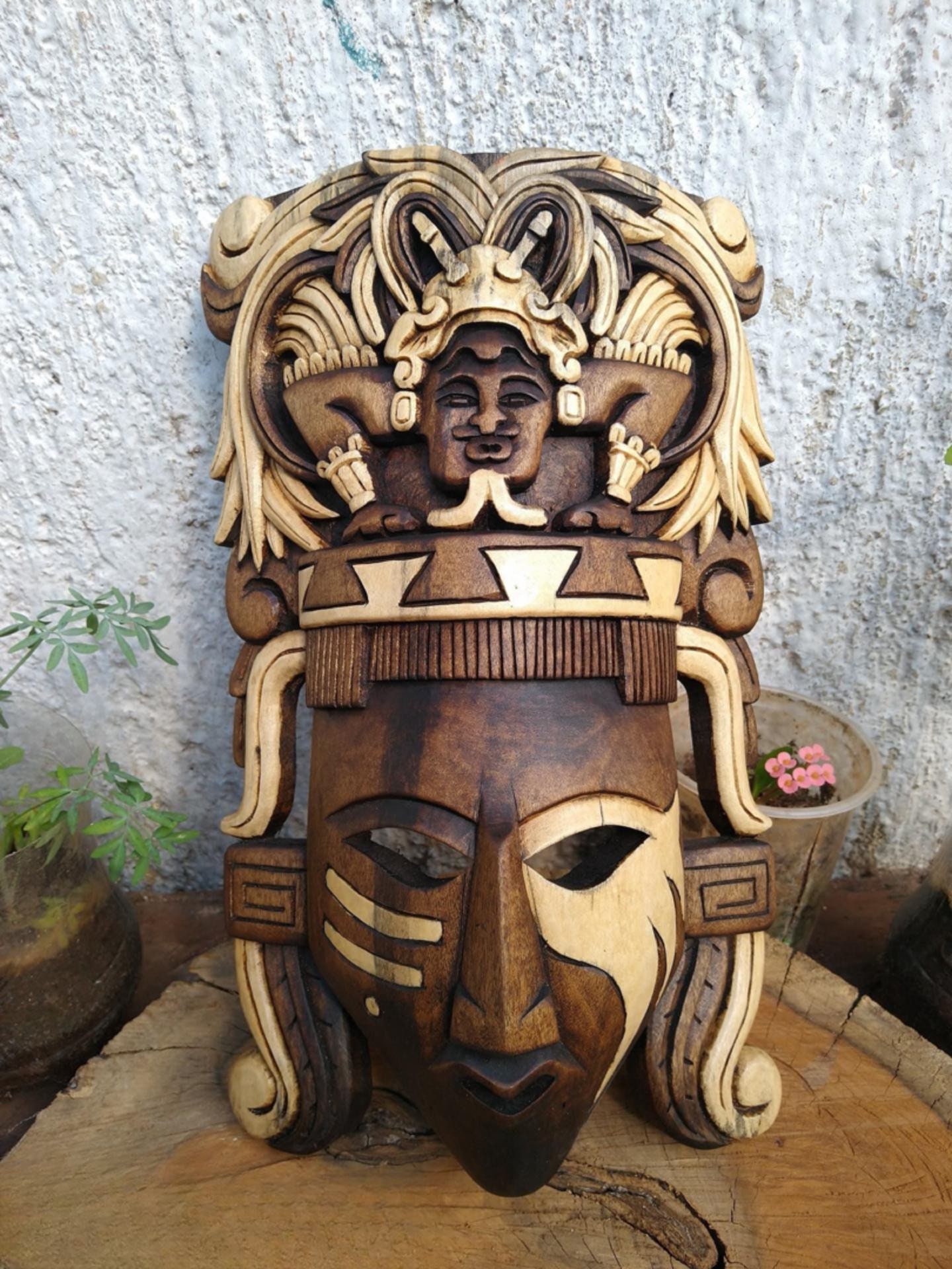 Prehispanic Wooden mask, Mayan culture, Mexican wall art, Hand carved ASK FOR CUSTOMIZE
