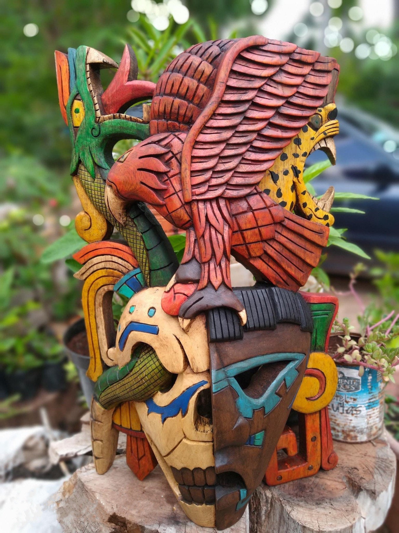 “Wooden Mask – Mayan Mask – Mexican Wall Art”