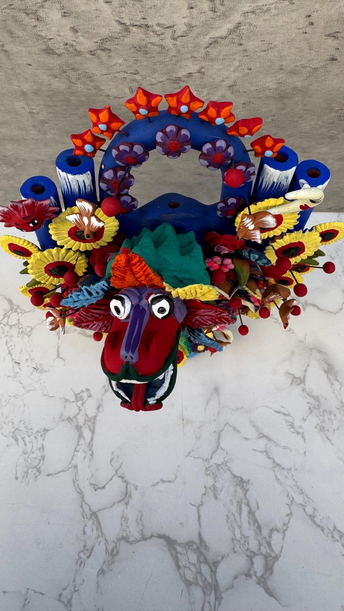 This piece is a combination of the traditional tree of life and chandeliers with a Mexican concept
