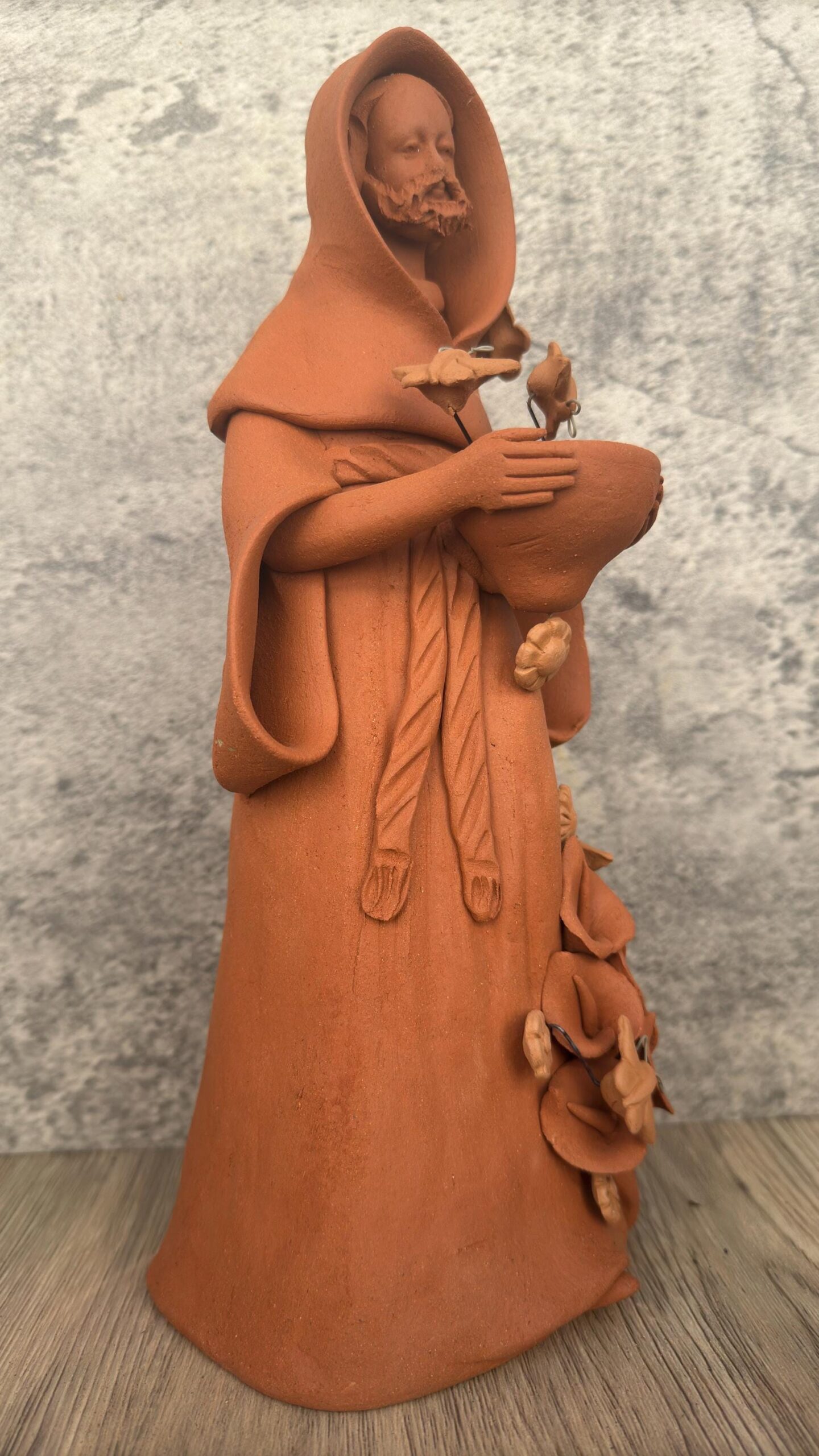 Handmade Terracotta Saint Francis of Assisi Statue – Unique Clay Sculpture with Intricate Details