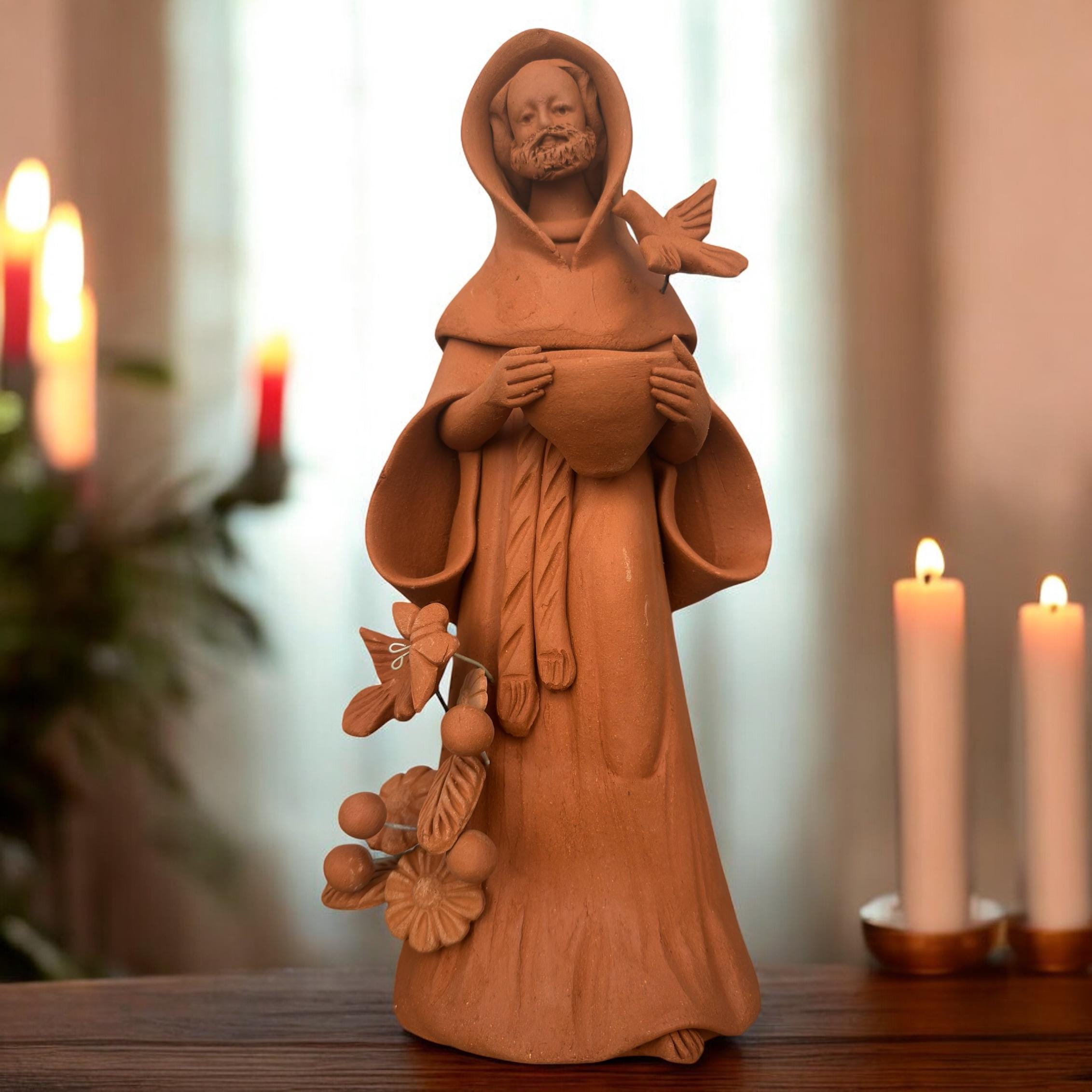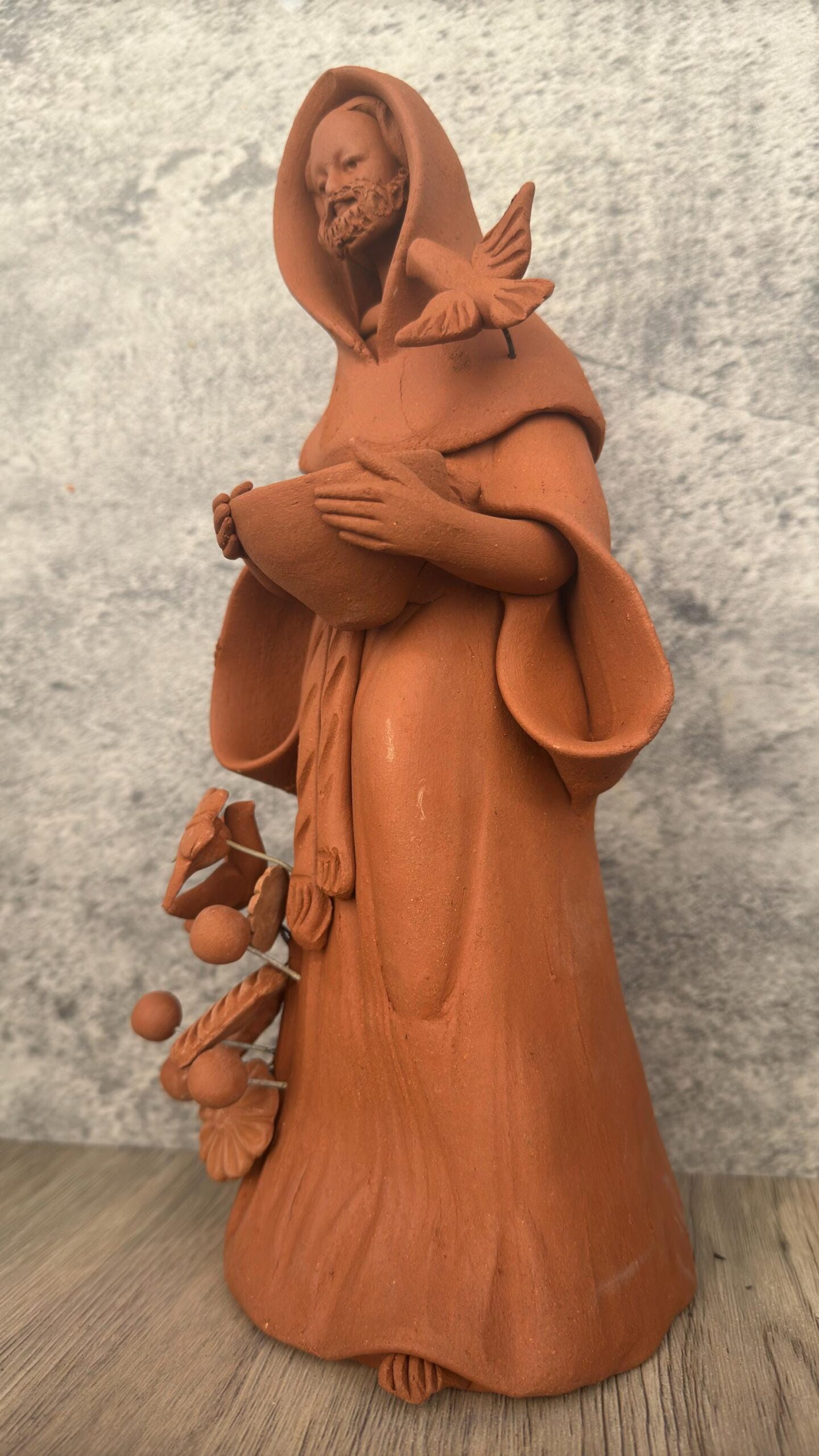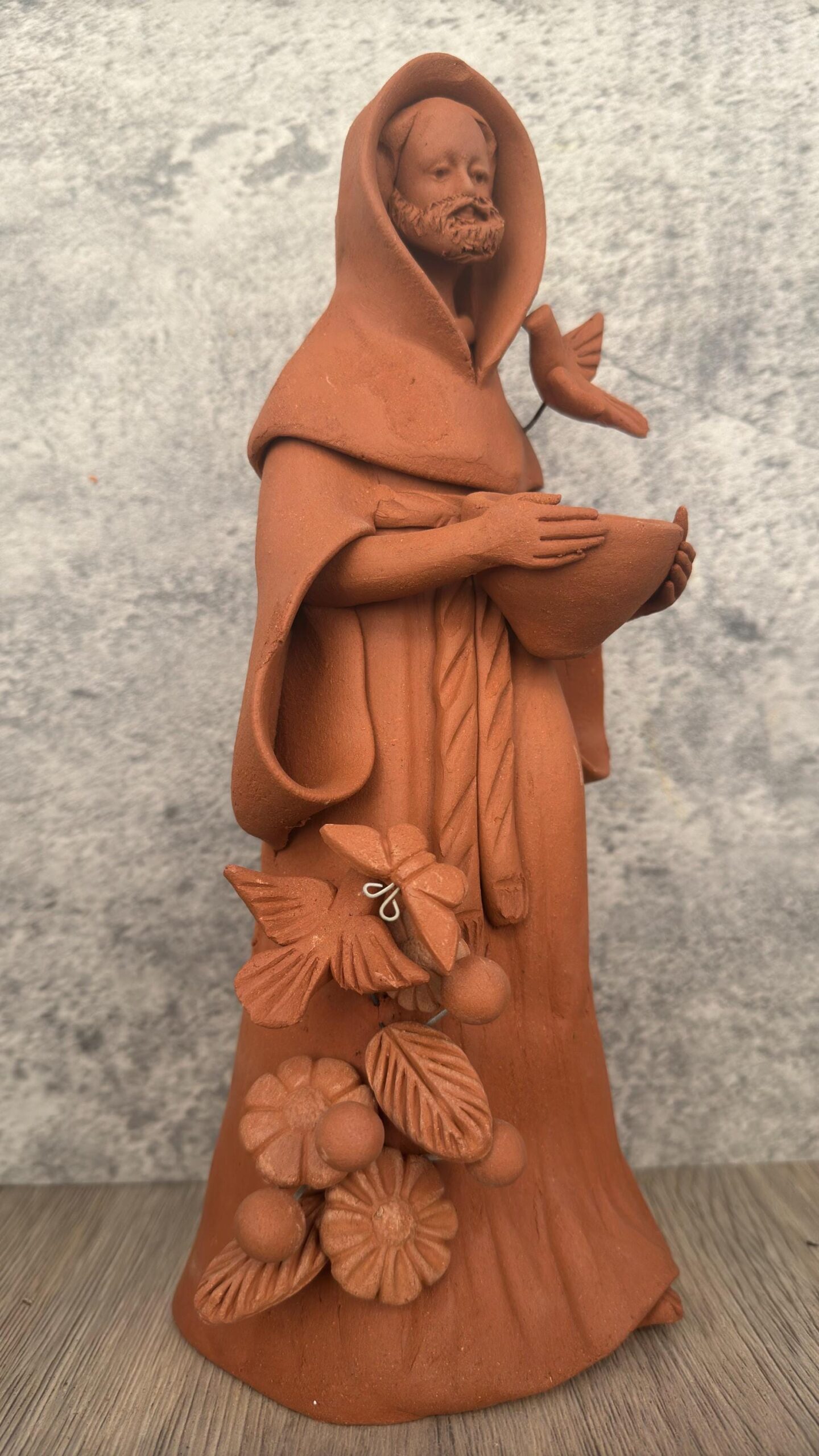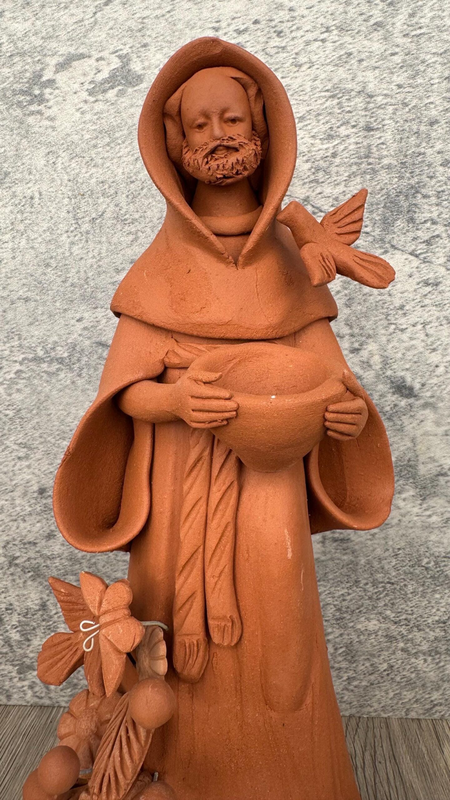Handmade Terracotta Saint Francis of Assisi Statue – Unique Clay Sculpture with Intricate Details