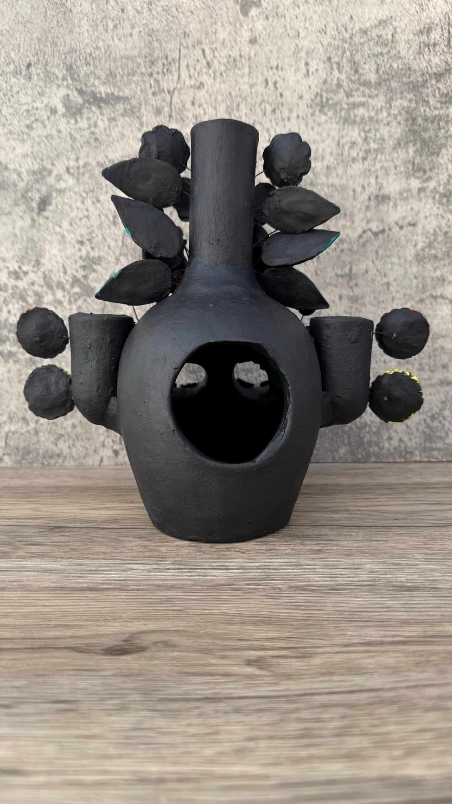 Ideal for adding a sense of mystery to your ambiance or commemorating the Day of the Dead, this piece serves as a functional work of art, a celebration of life, and a tribute to the dearly departed. As a centerpiece or a thoughtful gift, it carries the spirit of Michoacan into your home.