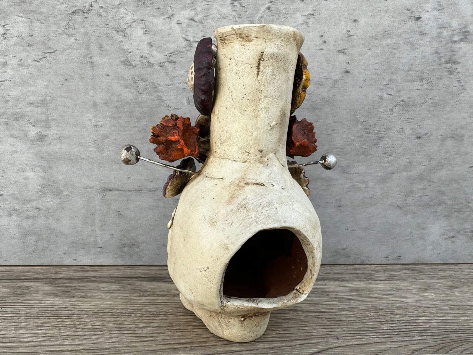 Skull Mini Chimney Michoacan Clay - Artisanal Handcrafted Mexican Decor, Unique Gothic Home Accent Decor, Day of the Dead Cultural Art
