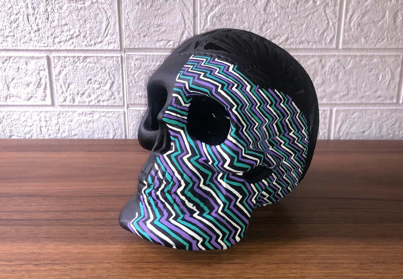 Clay skull with paint decoration ideal to decorate your home or as a special gift, features: