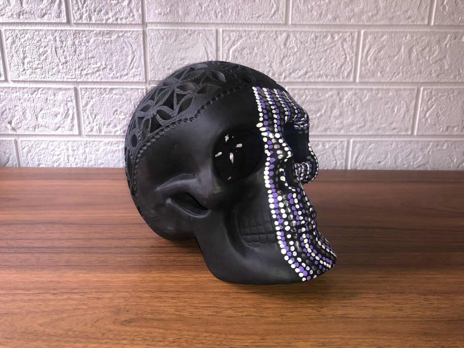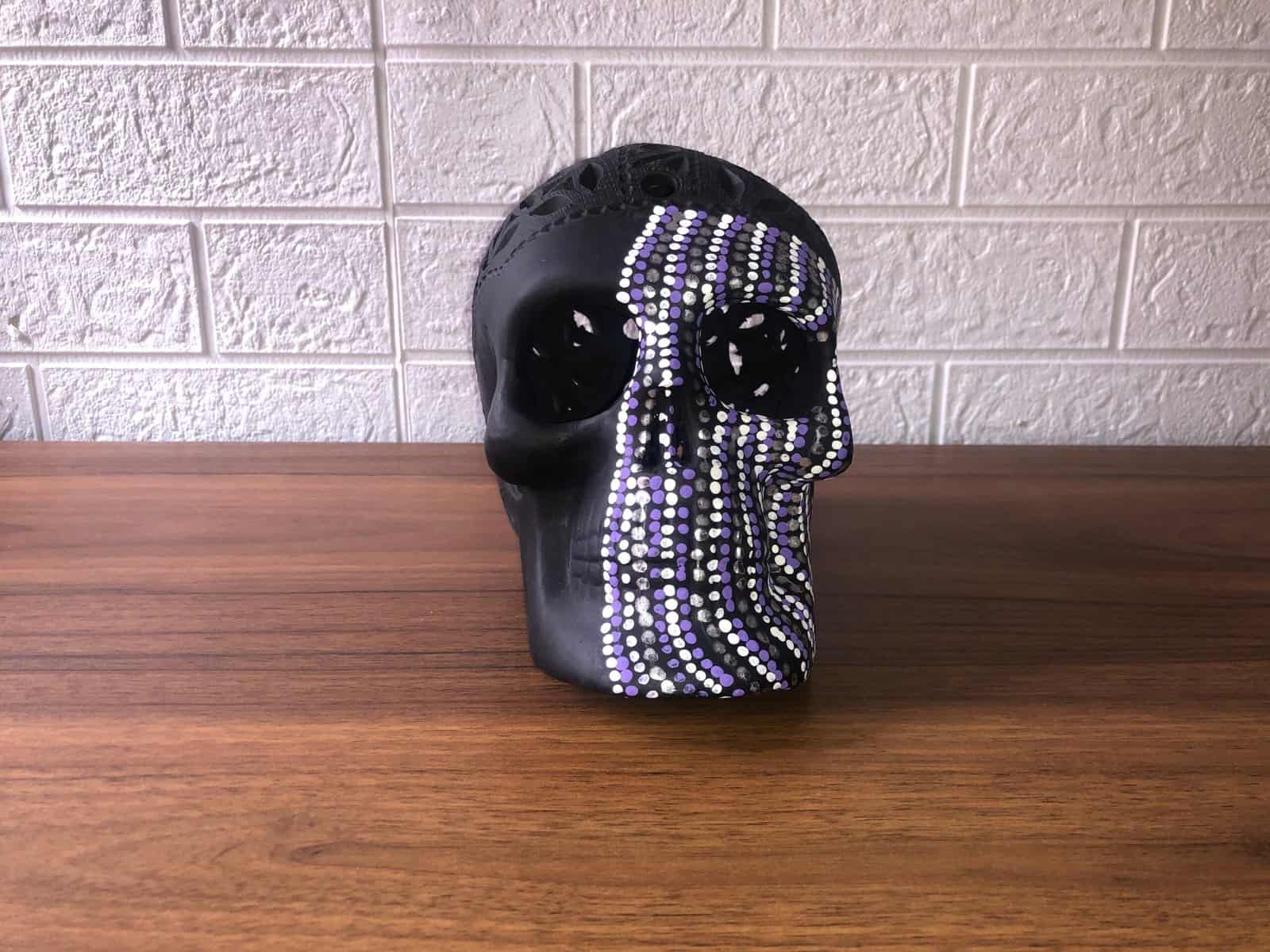 Clay skull with paint decoration ideal to decorate your home or as a special gift, features: