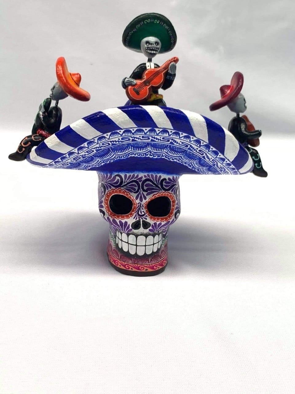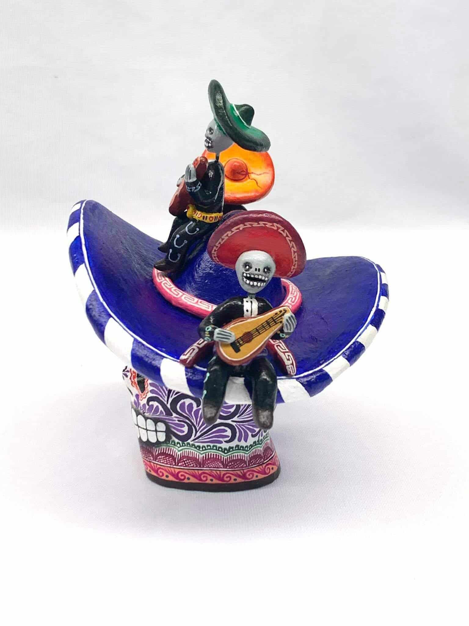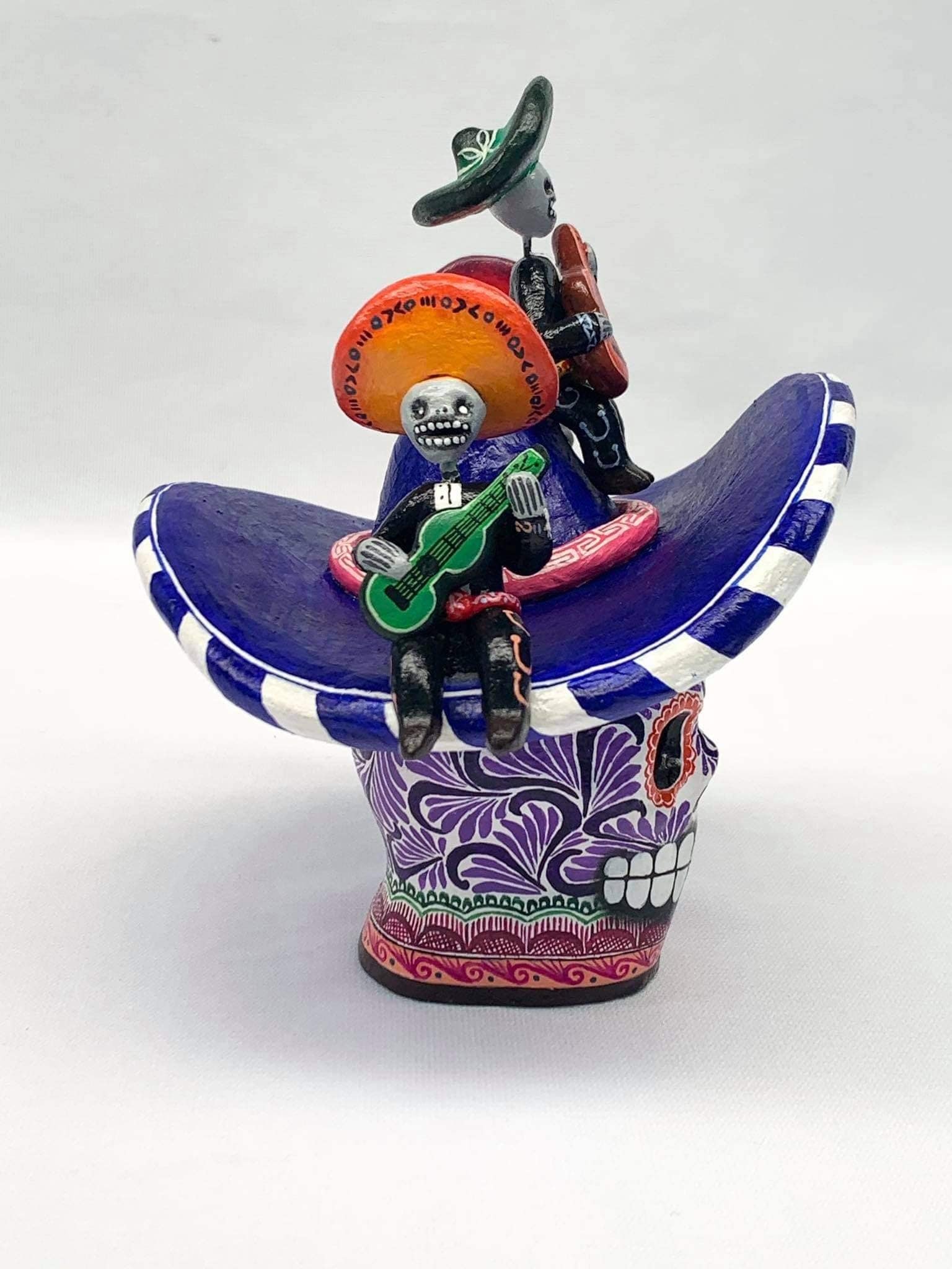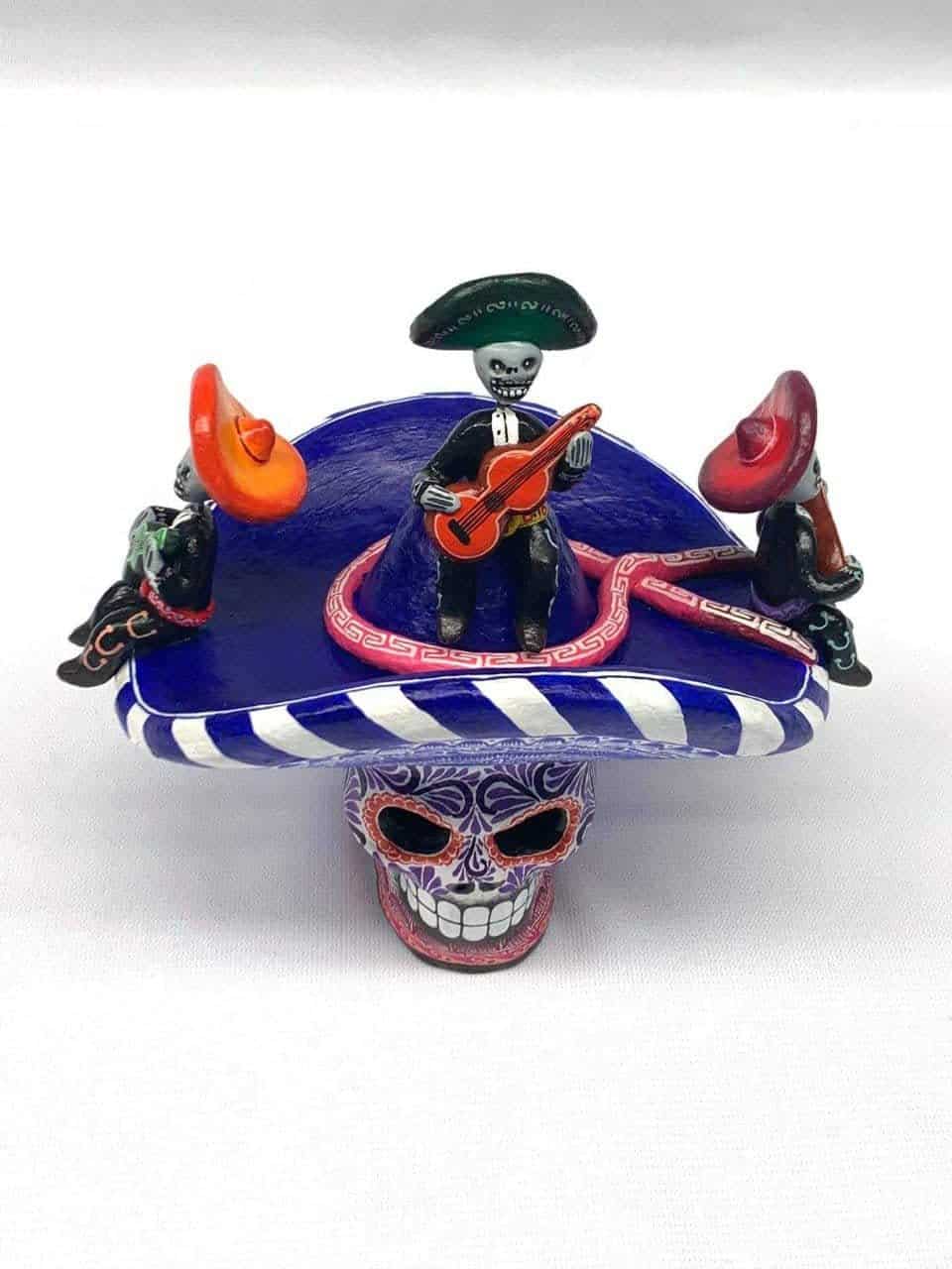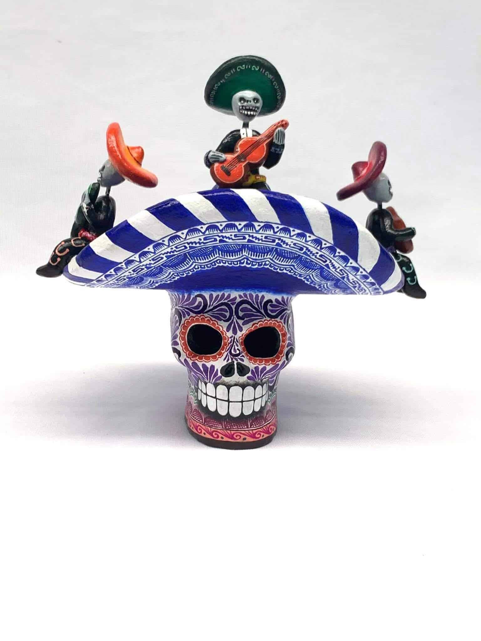 Clay skull with mariachi decoration ideal to decorate your home or as a special gift.