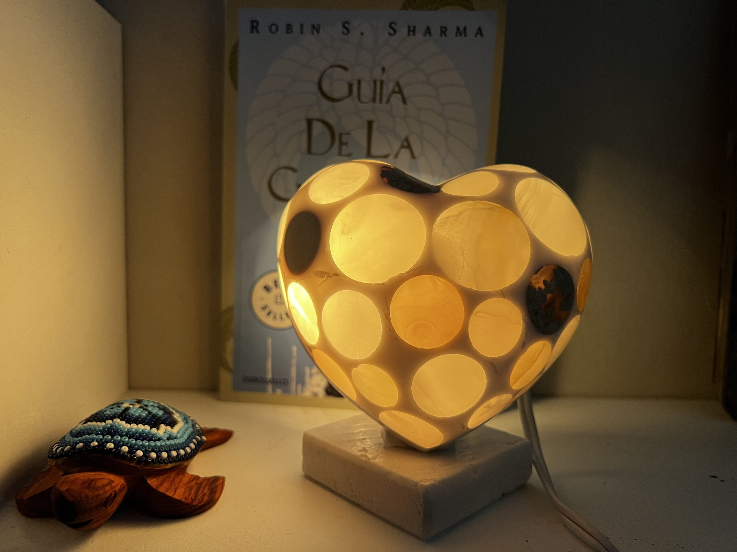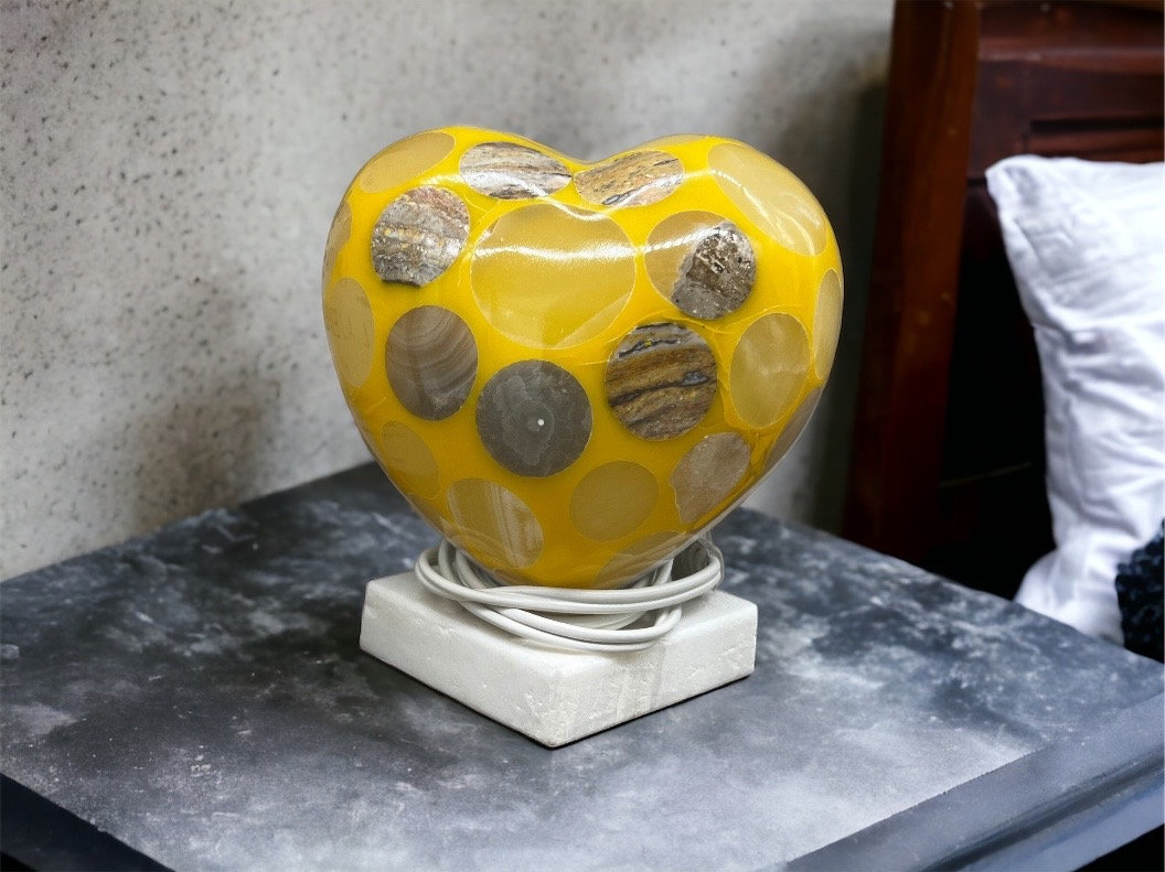 This heart-shaped stone lamp is made with a translucent stone that, when painted inside with acrylic paints, will make its natural colors and the colors of the acrylic stand out intensely. The length of the cable measures 31″. To turn on the lamp you only have to connect it, since it does not have an on or off button.