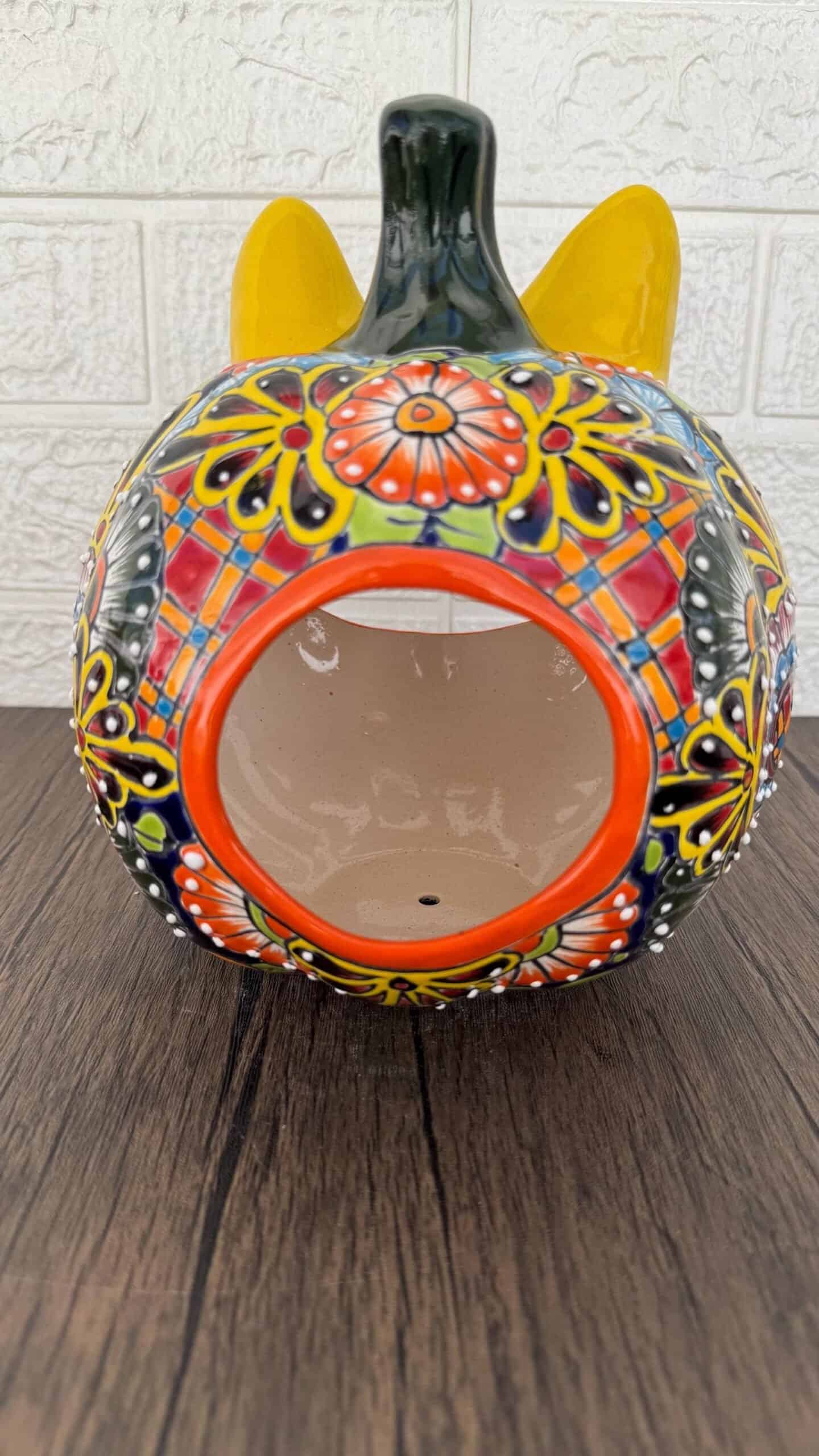 Talavera Halloween Pumpkin Handmade Colorful Ceramic Jack-O’-Lantern Artisan Pottery from Puebla Unique Fall & Day of the Dead Spooky Art