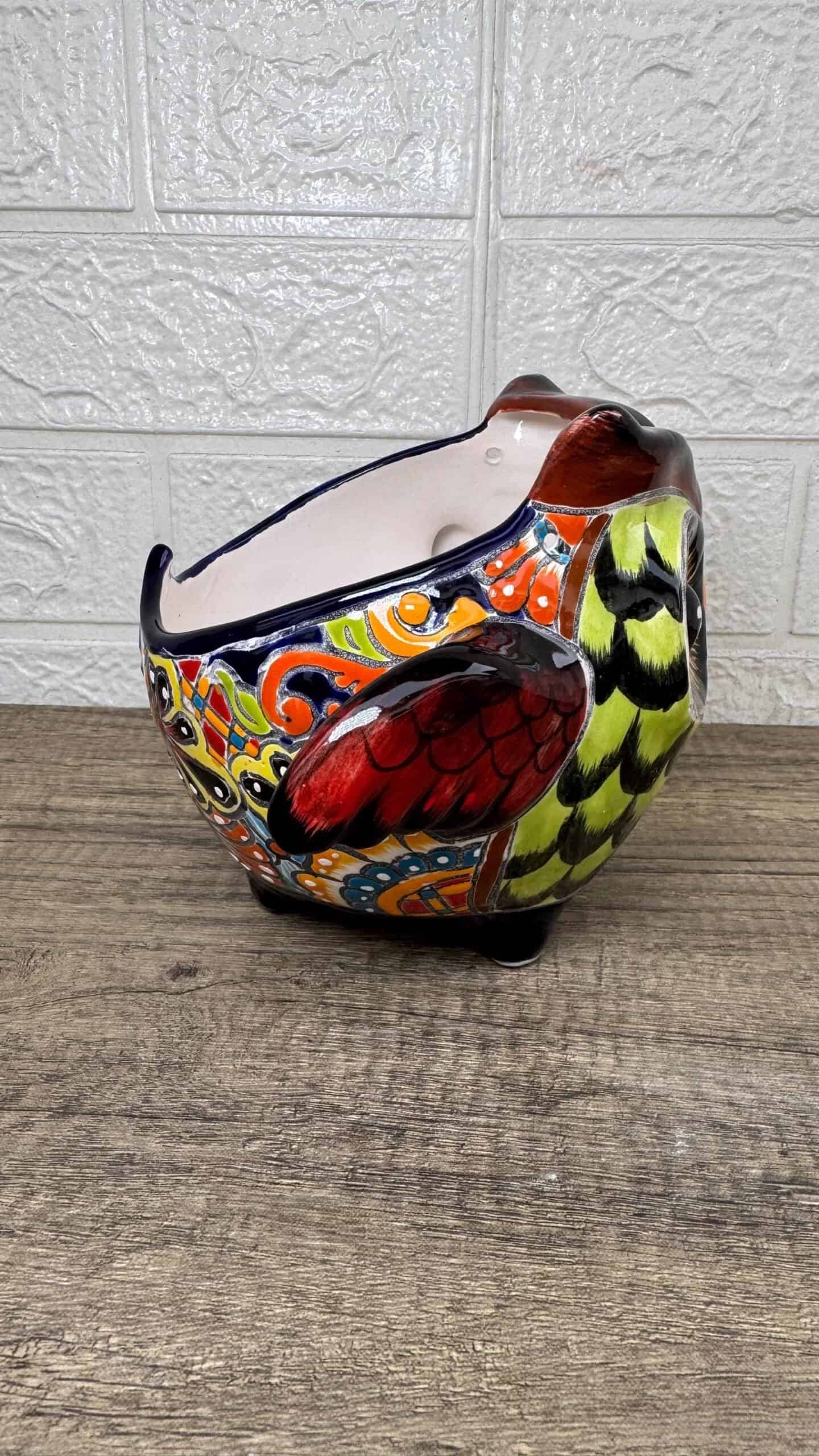 Talavera Planter Pot Owl Figurine Handmade Ceramic Pottery Artisan Bird Puebla Hand Painted Folk Art Home Decor Boho Animal Sculpture