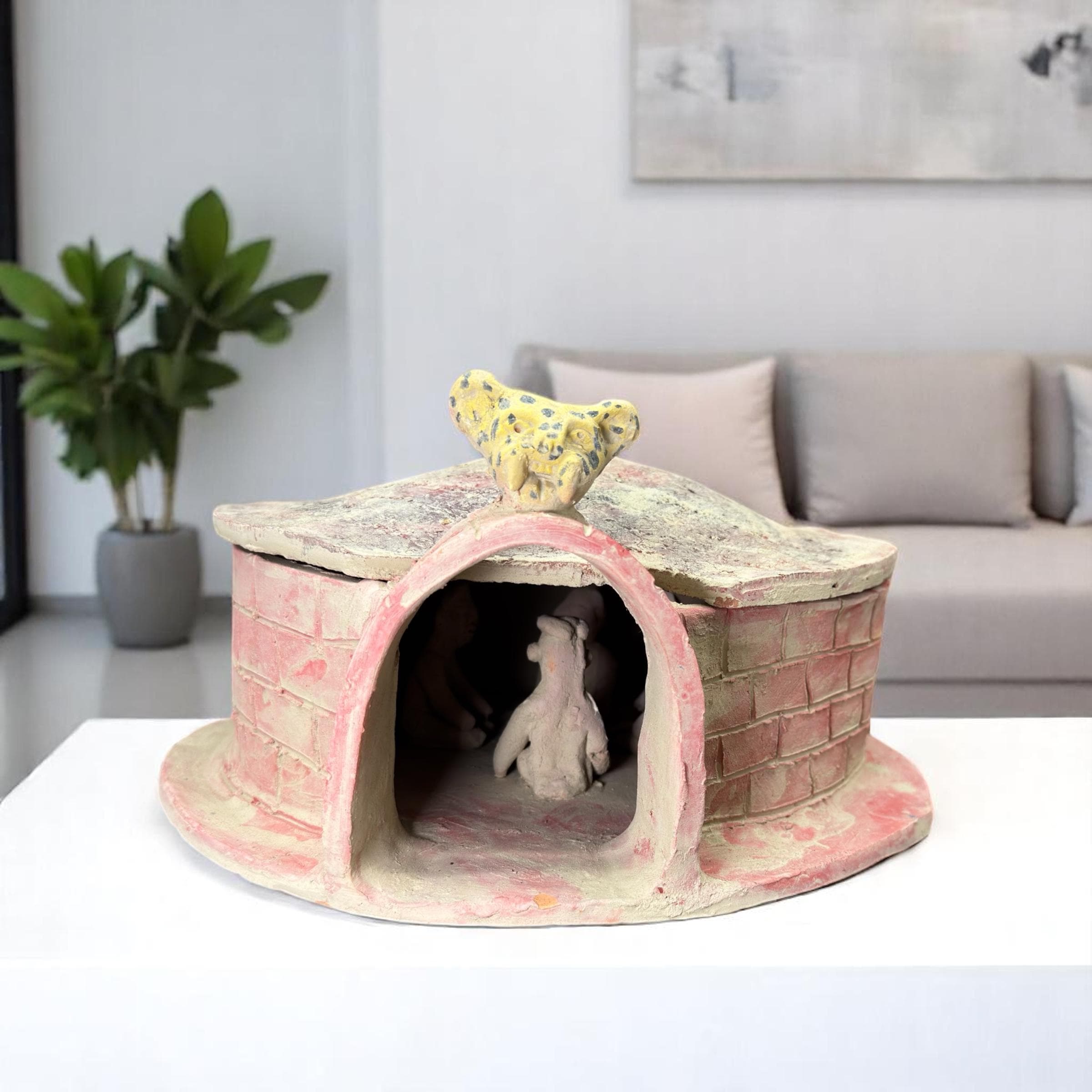 Each detail of this sculpture is made by hand using natural clay, showcasing the artisan’s deep respect for cultural roots. Ideal for collectors of Mexican folk art or those drawn to holistic living, spiritual rituals, and native traditions, this temazcal piece brings authenticity and meaning into any space.