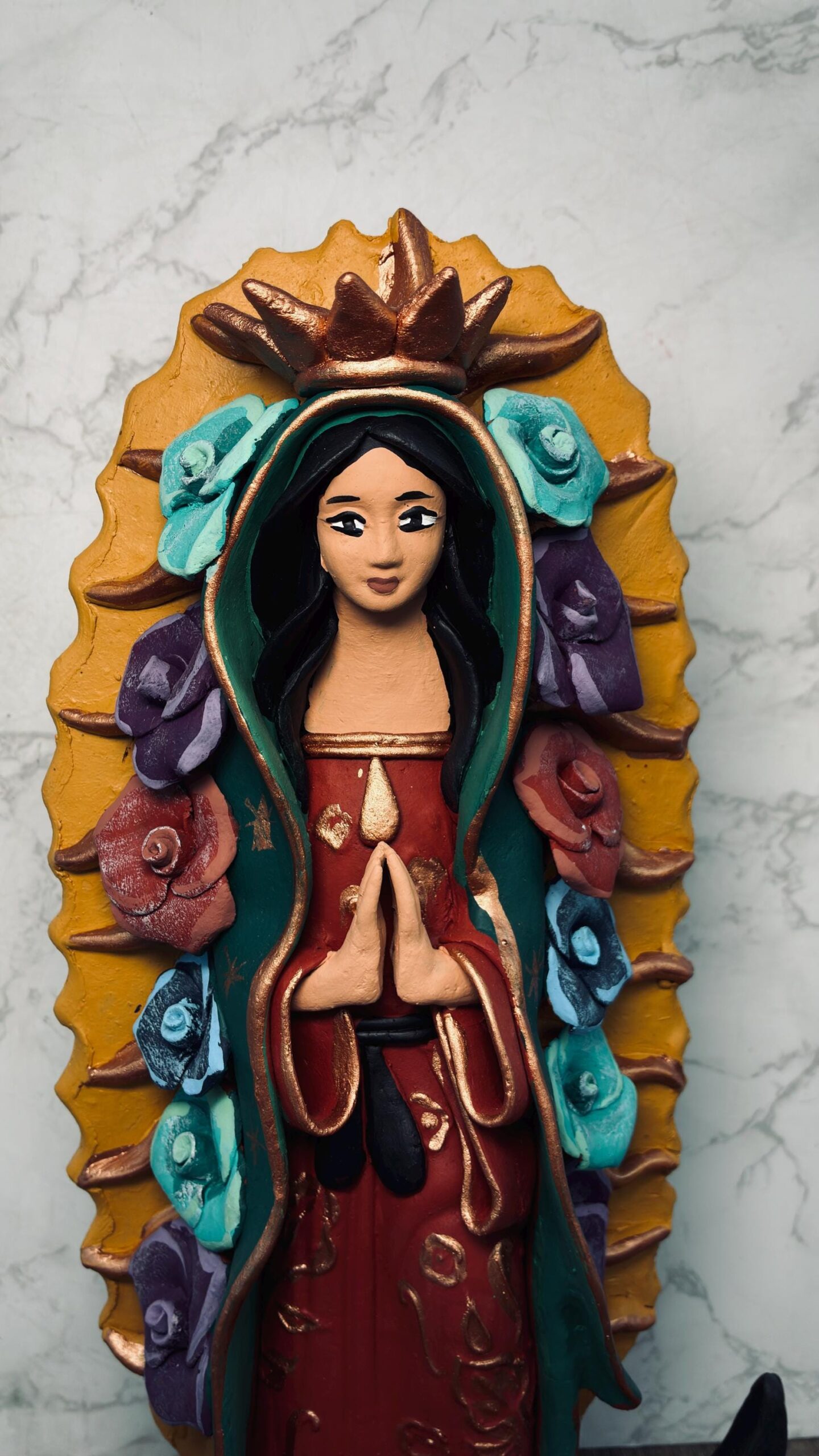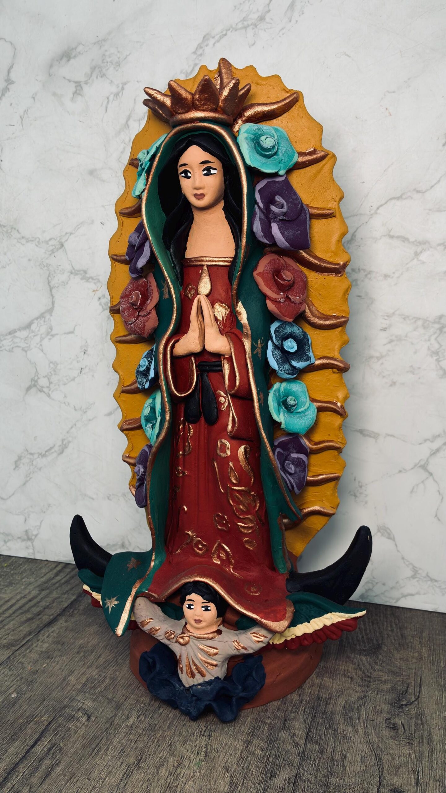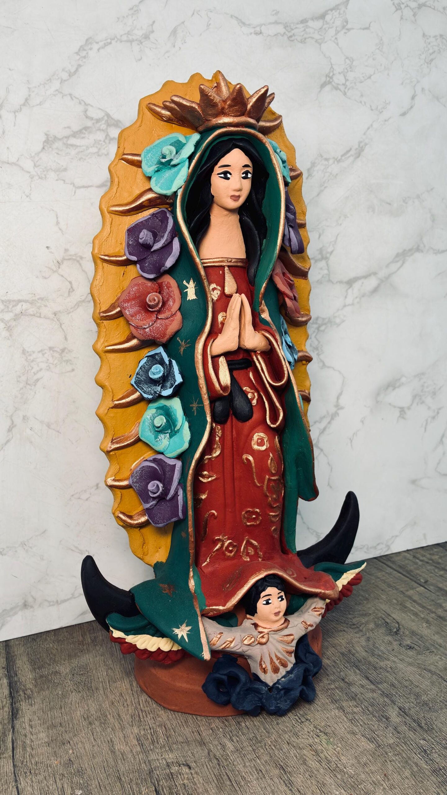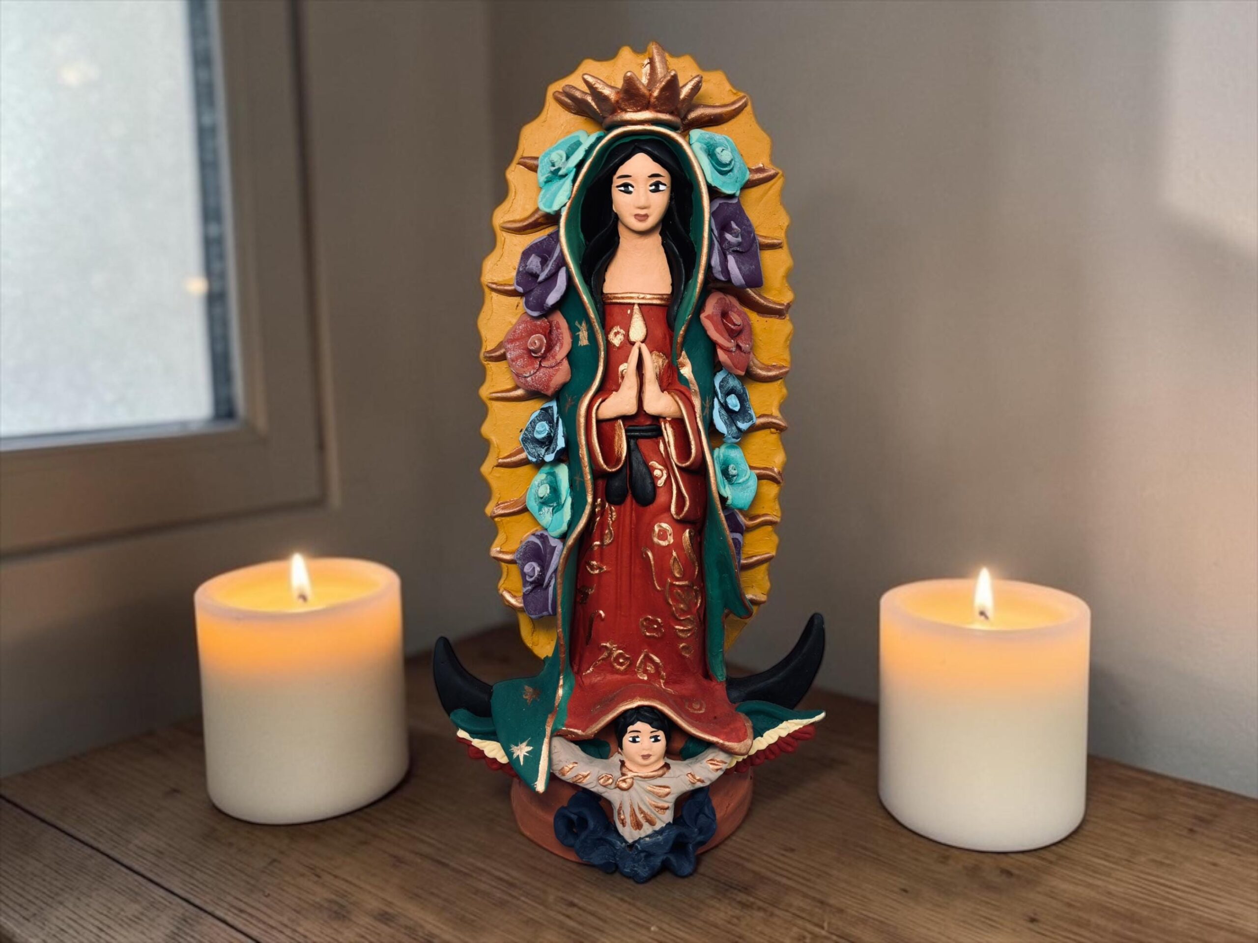 Virgin Mary Handmade Clay Piece, Virgen de Guadalupe Mexican Decoration, Mary Virgin Sculpture, Metepec Estado de México Virgencita