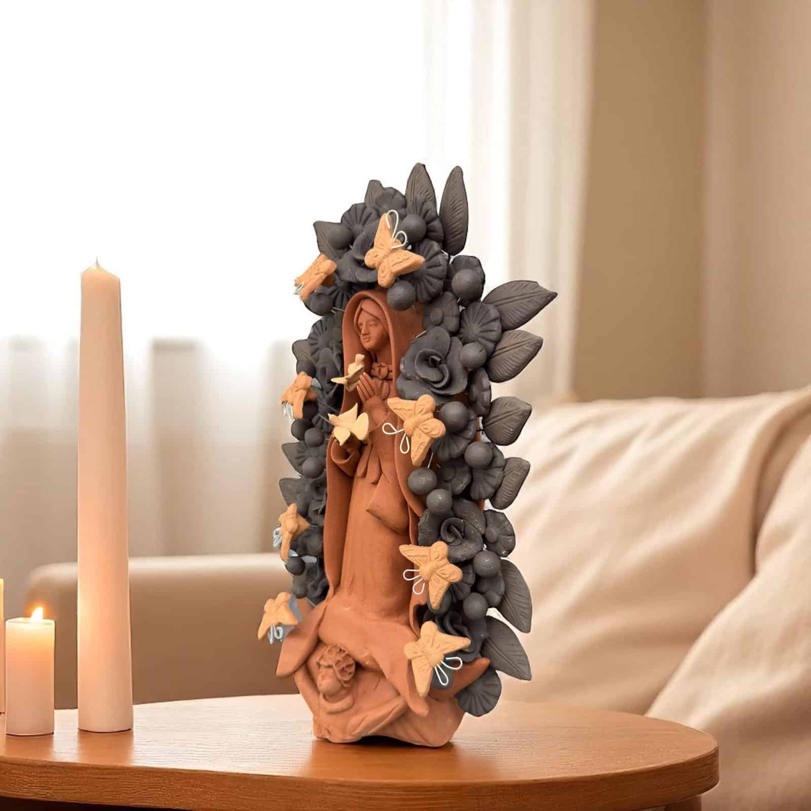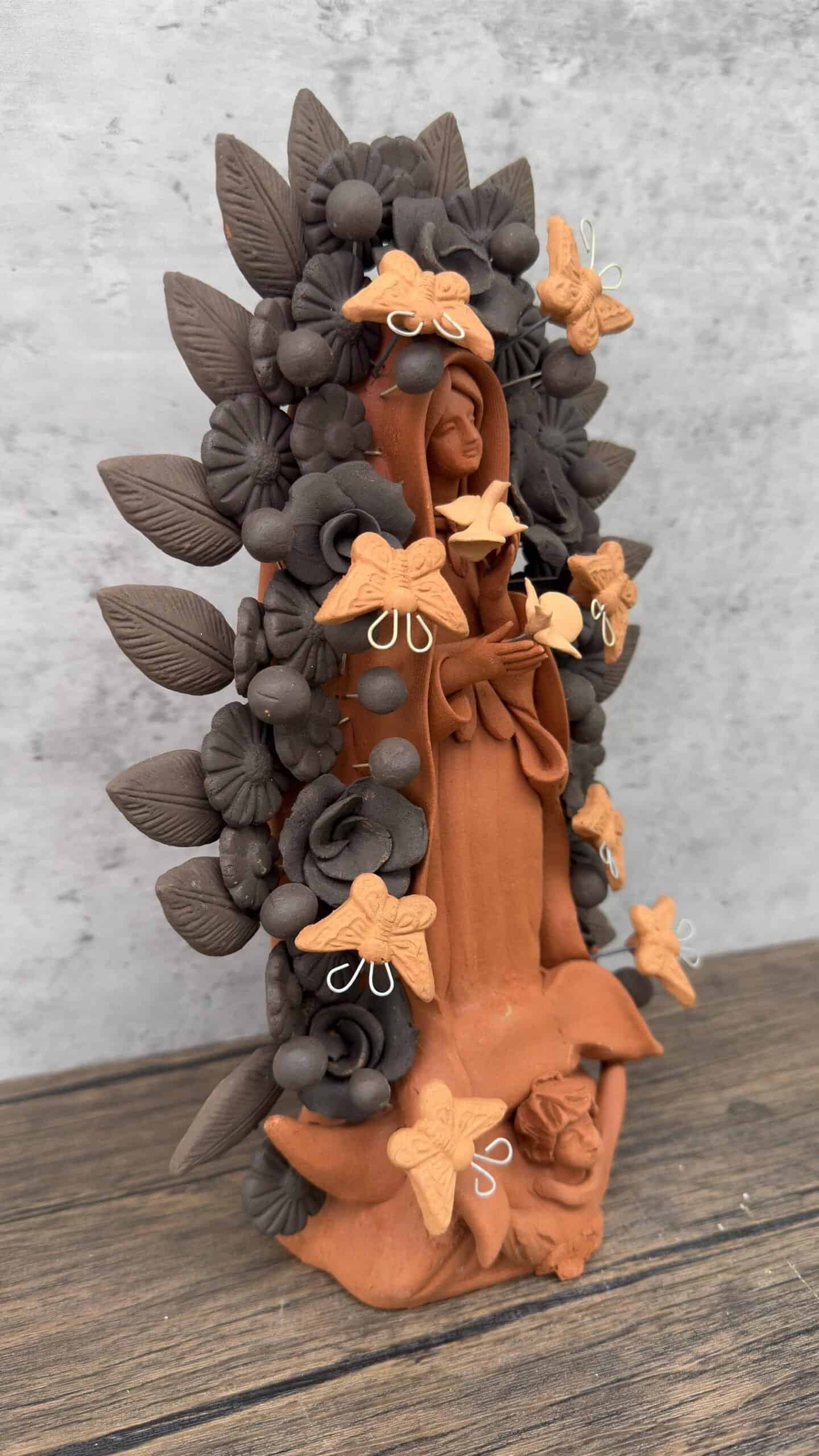 Virgin Mary Handmade Clay Piece, Virgen de Guadalupe Mexican Decoration, Metepec Estado de México Virgencita