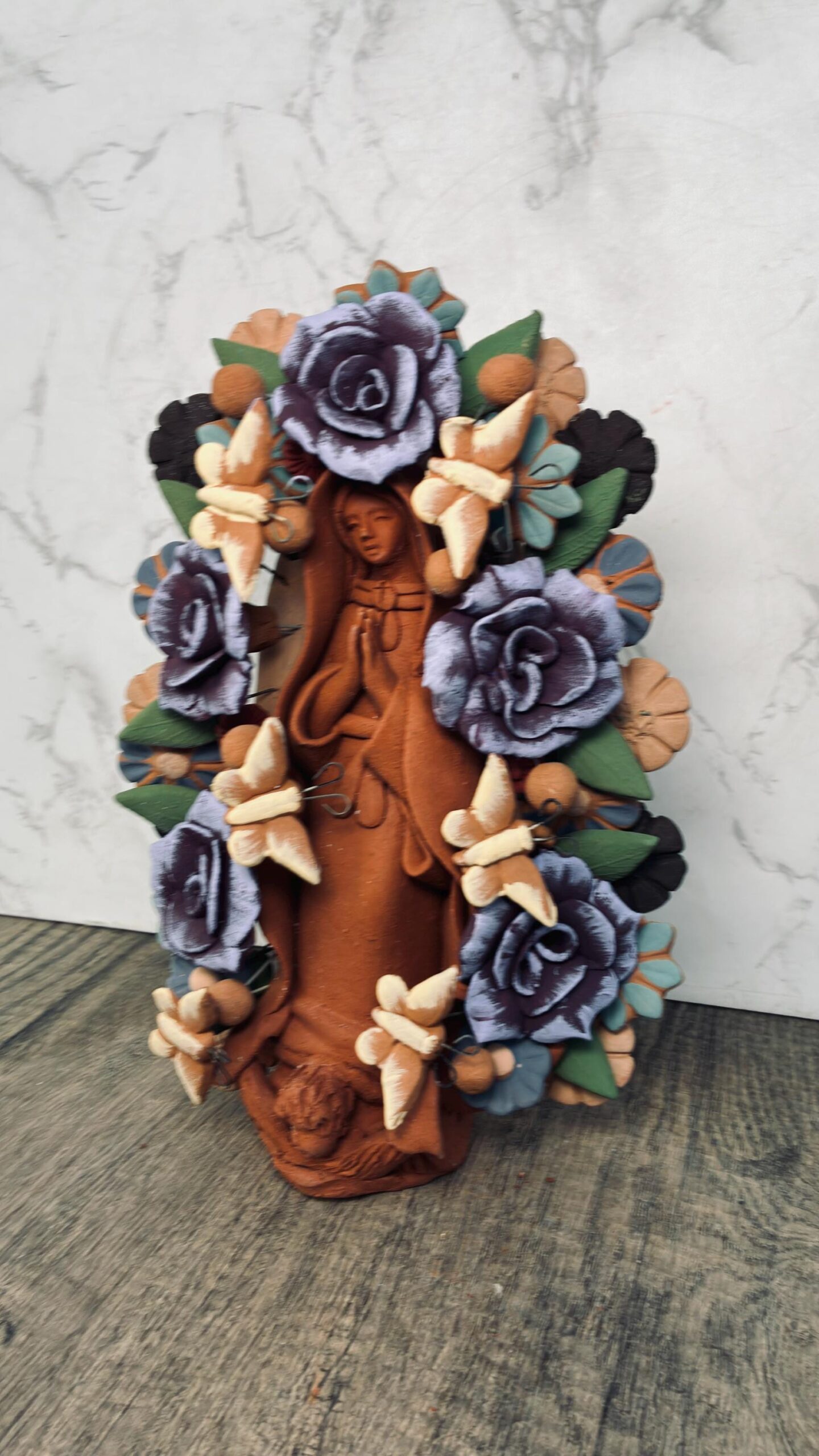 Virgin Mary Handmade Clay Piece, Virgen de Guadalupe Mexican Decoration, Mary Virgin Sculpture, Metepec Estado de México Virgencita