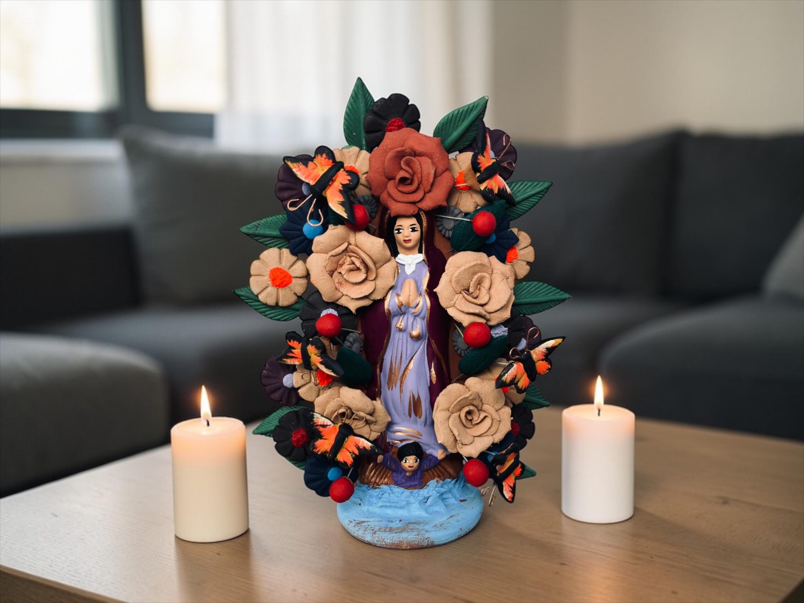 Virgin Mary Handmade Clay Piece, Virgen de Guadalupe Mexican Decoration, Mary Virgin Sculpture, Metepec Estado de México Virgencita