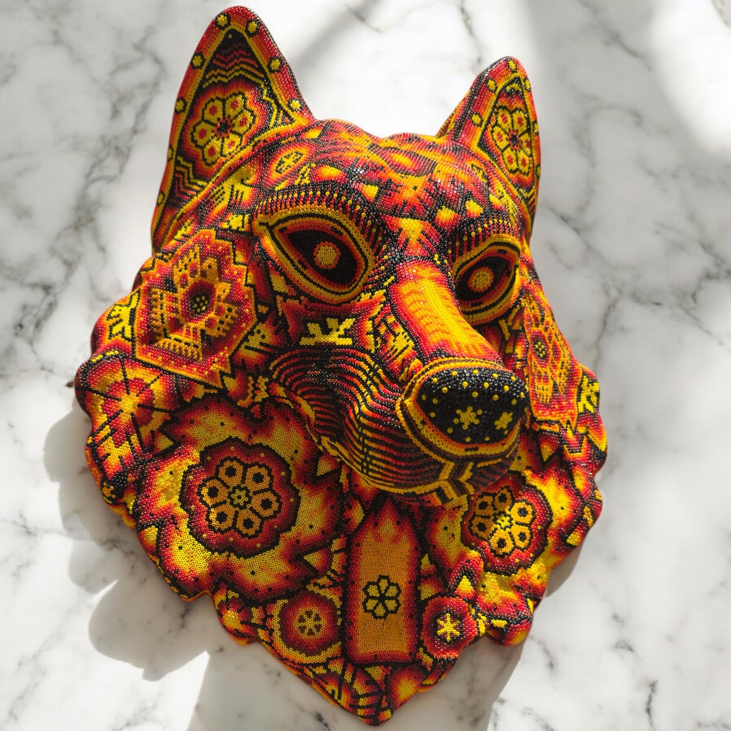 “ Wolf wall sculpture” Huichol culture and Wixarica art